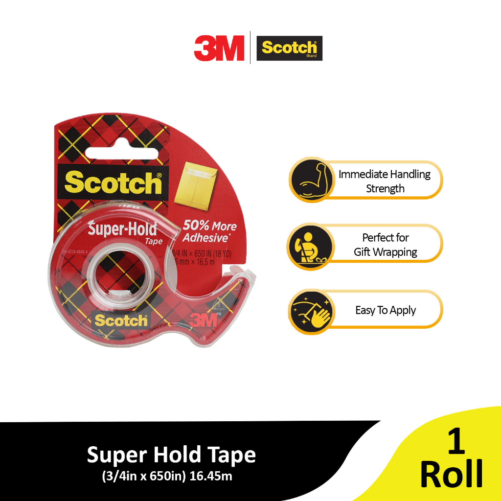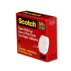 Das ultimative Klebeband für alle Fälle! Scotch Super-Hold mit satten 50% mehr Klebstoff als herkömmliche Bänder. Perfekt um wichtige Umschläge sicher zu verschließen, Pakete zu verpacken oder Adressetiketten zu schützen. Die 6 Rollen à 25,4 Meter Länge und 19mm Breite reichen für alle Projekte in Schule, Büro und Zuhause. Das glänzende Finish ist praktisch unsichtbar und hinterlässt keine unschönen Rückstände. Einfach zu handhaben und sauber abzureißen. Passt perfekt auf Scotch Tischabroller oder kann einzeln verwendet werden. Ob für Bastelarbeiten, Reparaturen oder zum Verpacken - dieses Klebeband hält wirklich was es verspricht. Ein echter Allrounder der in keinem Haushalt fehlen sollte!