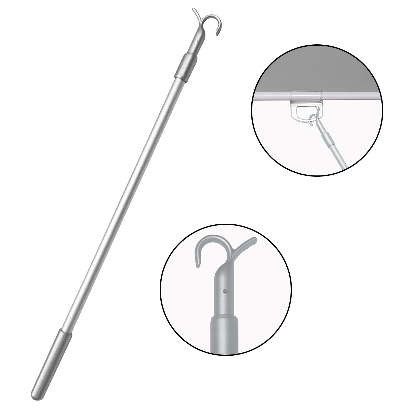 Rollo kaputt oder keine Kordel mehr? Diese Zugstange löst das Problem! Teleskopisch von 35,7 bis 60 cm (14-23 Zoll) verstellbar, passt also für fast jedes Rollo. Aus leichter Aluminiumlegierung - robust aber nicht zu schwer. Mit praktischem Haken am Ende, einfach ins Zugband einhaken und hoch- oder runterziehen. Perfekt für Wabenplissees, Rollos und andere Systeme ohne Kordel. Besonders praktisch für ältere Menschen oder wenn mal wieder die Kordel gerissen ist. Einfach auf die benötigte Länge ziehen, festdrehen und schon kann's losgehen. Nie wieder mit kaputten Rollos herumärgern - diese Stange macht's wieder nutzbar!