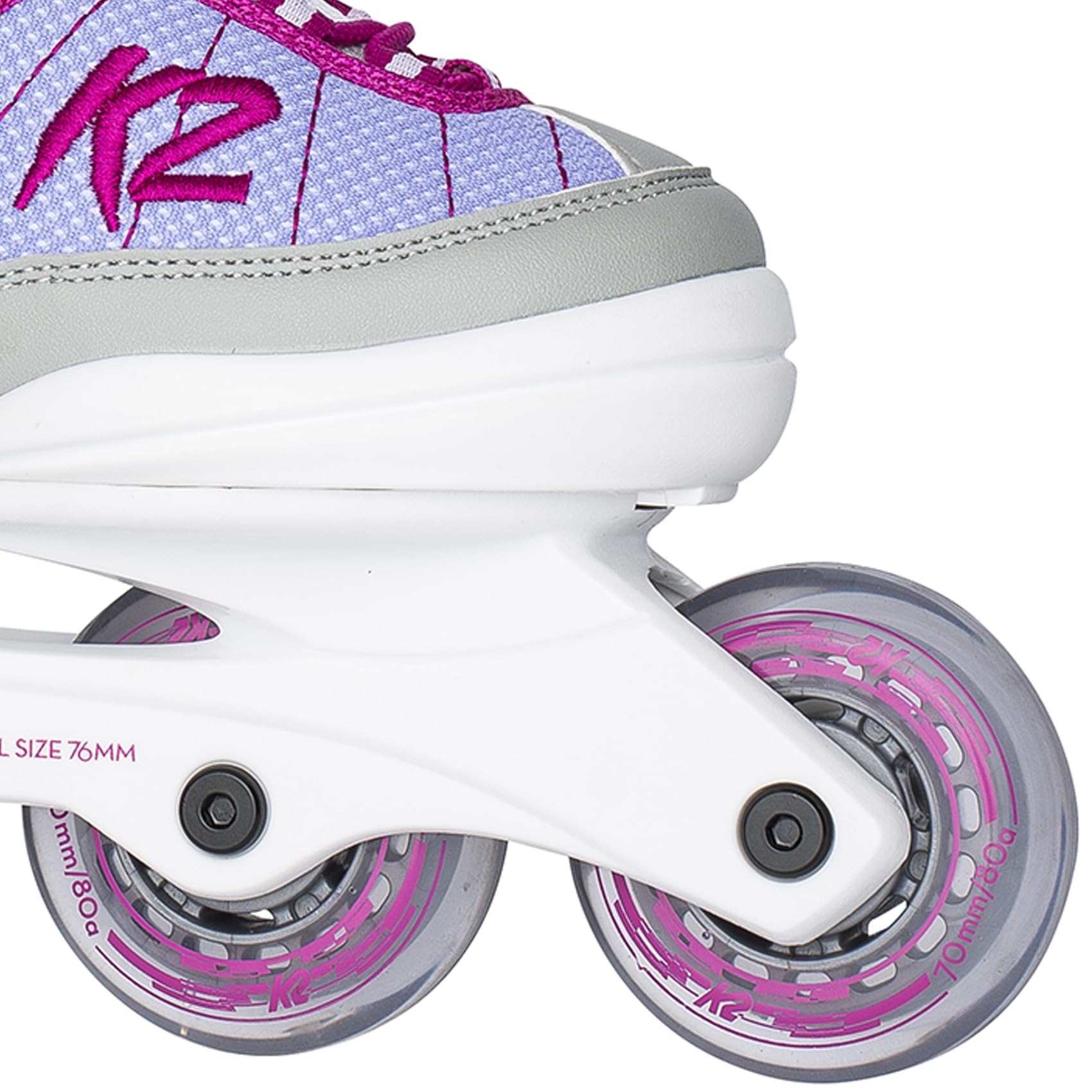 Hey, dein Kind will Rollschuh fahren lernen? Mit den K2 Merlin Rollschuhen wird das zum Kinderspiel! Die gibt's in den Größen S, M und L - und jede Größe ist nochmal um 5 Größen verstellbar, also wachsen sie mit. Das Speed Lacing System sorgt dafür, dass die Schuhe mit einem Zug fest sitzen. Die Edelstahlkufen sind rostfrei und super stabil, damit dein Kind sicher unterwegs ist. Die Junior Cuff Manschette gibt extra Halt am Knöchel. Ob blau, pink oder anders - diese Rollschuhe sehen nicht nur cool aus, sie sind auch praktisch. Perfekt für Anfänger und Fortgeschrittene. Einfach anschnallen und losrollen!