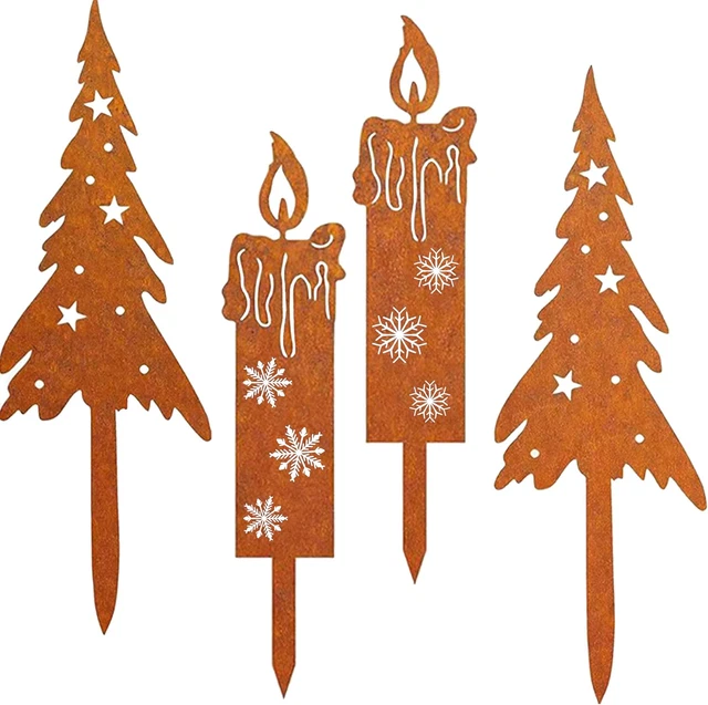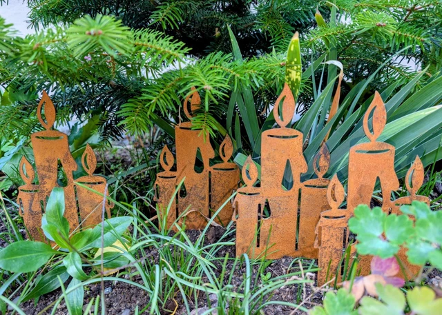 Diese süßen Rost-Kerzen bringen sofort Weihnachtsstimmung in deinen Garten! Einfach in den Blumenkasten, ins Beet oder in den Topf stecken - und schon leuchtet dein Outdoor-Bereich festlich. Die 25 cm hohen Kerzen aus Metall sehen aus wie antik und verwittern mit der Zeit noch schöner. Super stabil und absolut wetterfest, halten also auch bei Regen und Schnee stand. Das 2er-Set ist perfekt für den Hauseingang, den Balkon oder die Terrasse. Sieht alleine schon toll aus oder kombiniert mit anderen Weihnachtsfiguren. Ohne Deko geliefert - deiner Kreativität sind keine Grenzen gesetzt! Made by KRONLY, einem deutschen Unternehmen für Gartendekoration.