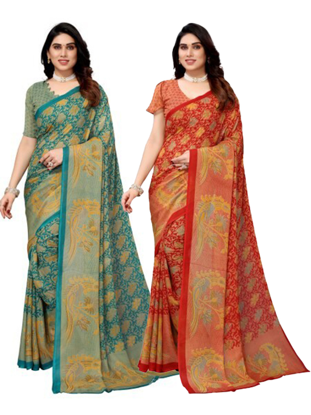 • Yashika Damen Banarasi Sari Rot - Baumwoll-Seide Sari Mit Blusenmaterial Für Feste