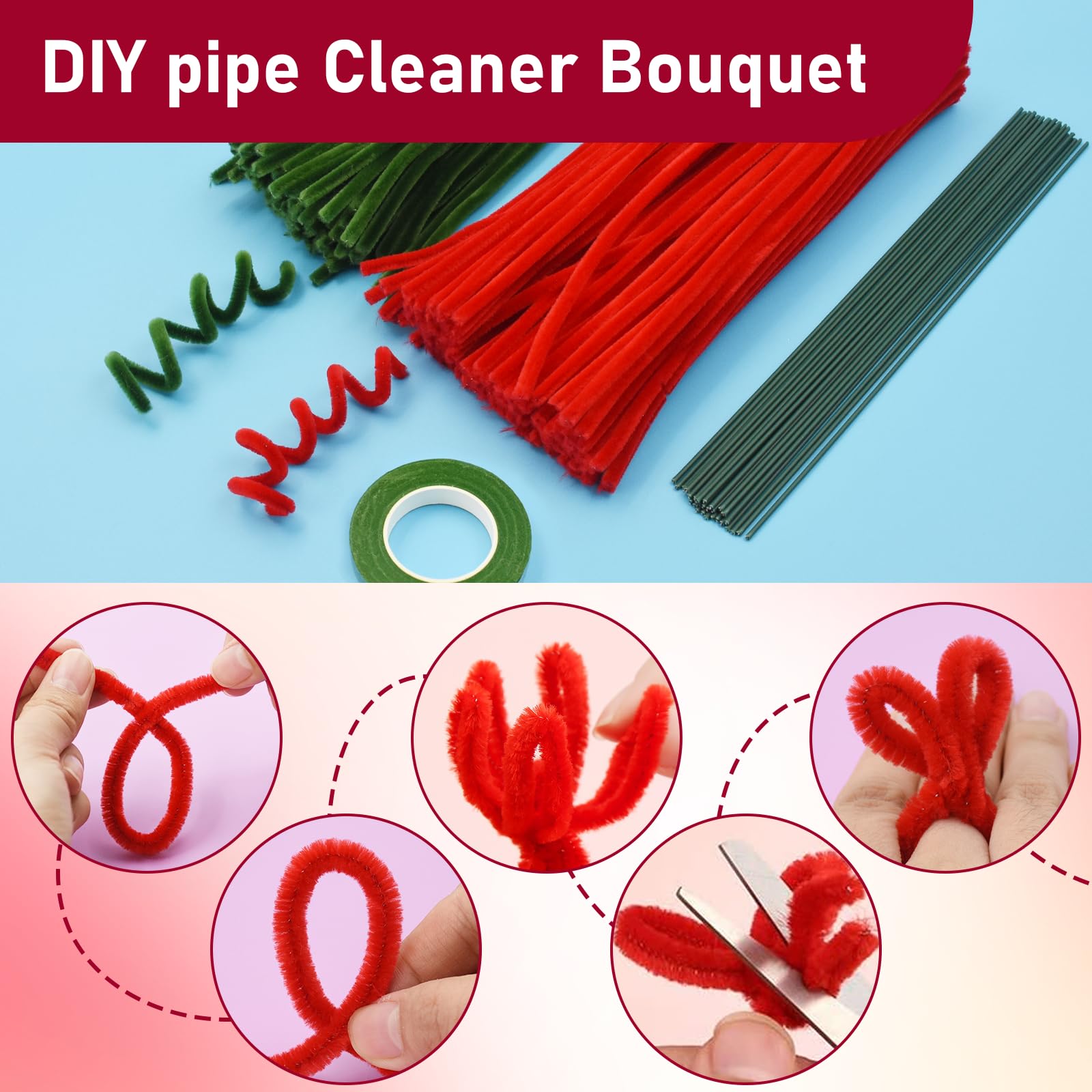 Kreativität ohne Grenzen! Dieses umfangreiche 200-teilige Pfeifenputzer-Set enthält 100 rote und 100 grüne Chenilledrähte plus 20 Blumendrähte und 2 Klebestifte. Perfekt für Rosensträuße, Tiere, Dekorationen und unzählige andere Bastelprojekte. Die Pfeifenreiniger haben 6mm Durchmesser und 30cm Länge - ideal zum Biegen, Formen und Gestalten. Das Metalldraht-Innenleben mit weichen Fasern ist flexibel und hält jede Form. Besonders geeignet für Weihnachtsdekoration, Valentinstags-Geschenke, Kinderbasteln oder Wohnaccessoires. Im Gegensatz zu echten Blumen welken diese Kreationen nie - perfekt für Allergiker und dauerhafte Dekoration. Mit Video-Tutorials online leicht zu erlernen. Für Schulen, Kindergärten und kreative Familien - deiner Fantasie sind keine Grenzen gesetzt!