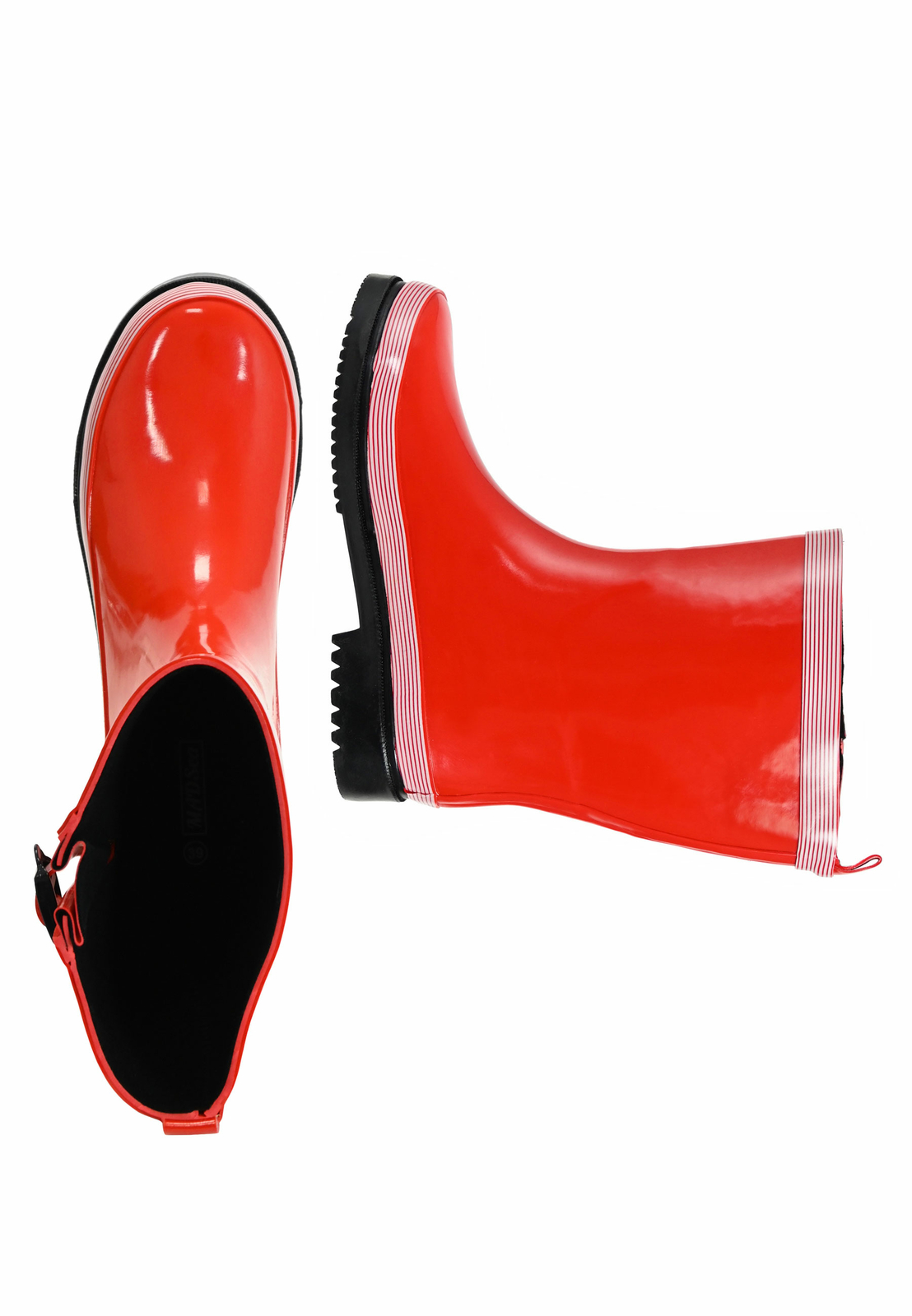 Praktisch und stylisch zugleich! Diese MADSea Gummistiefel in knalligem Rot sind perfekt für regnerische Tage. Mit 25cm Schafthöhe (Halbschaft) sitzen sie angenehm und geben genug Halt. Aus 1,9mm robustem Gummi gefertigt - komplett wasserdicht und leicht zu reinigen. Die rutschfeste Sohle mit Randverstärkung gibt sicheren Halt auf allen Untergründen. Besonderes Highlight: Die seitliche Zierschnalle mit Dehnfalte - sieht mega aus! Drinnen wartet ein kuscheliges Innenfutter und eine herausnehmbare kälteisolierende Einlegesohle auf dich. So bleiben deine Füße auch an kühlen Tagen schön warm. Verfügbar in Größen 36-42 mit passender Schaftweite. Perfekt für Hundespaziergänge, Gartenarbeit, Festival-Besuche oder einfach für den Alltag bei Schmuddelwetter. Sieht total trendig aus und ist dabei super funktional. Mach regnerische Tage zu deinen Lieblingstagen!