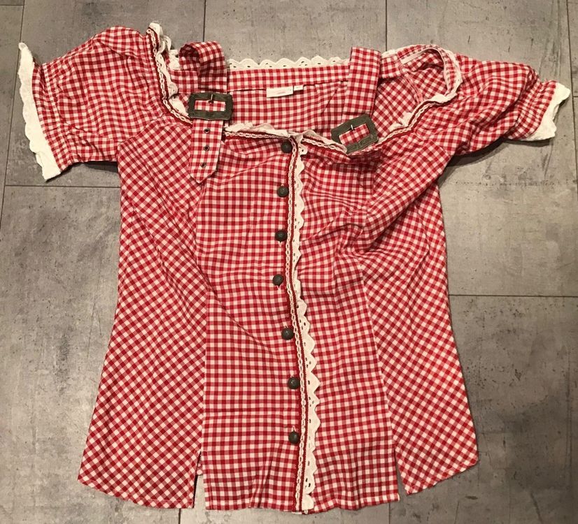 Die rot-weiß karierte Bluse ist qualitativ hochwertig verarbeitet und made in EU. Mit den typischen Puffärmeln und dem Rundhals-Ausschnitt mit hübscher Rüschenborte am Kragen sieht sie einfach authentisch aus.