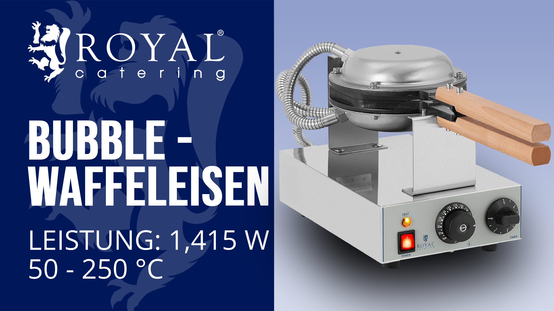 Perfekte Belgische Waffeln für den professionellen Einsatz! Das Royal Catering Waffeleisen überzeugt mit 1300 Watt Leistung für kurze Aufheizzeiten und gleichmäßige Bratergebnisse. Die runde Waffelplatte (18,5 cm Durchmesser) backt entweder eine große Waffel oder 4 einzelne Mini-Waffeln pro Durchgang. Die Antihaft-Beschichtung aus Teflon sorgt für ein leichtes Lösen der Waffeln und vereinfacht die Reinigung. Besonders praktisch: Der integrierte Timer (1-15 Minuten) mit Signalton und das einstellbare Thermostat (0-300°C) ermöglichen die perfekte Einstellung für verschiedene Waffel-Rezepte. Das Edelstahl-Gehäuse und die wärmeisolierten Griffe garantieren sichere Handhabung auch bei intensivem Einsatz. Der Überlaufschutz an den Plattenrändern verhindert das Austreten von Teig und hält die Arbeitsfläche sauber. Ideal für Cafés, Restaurants oder Catering-Services, die ihren Gästen frische, knusprige Waffeln in belgischer Art anbieten möchten. Das Gerät ist ausschließlich für den professionellen Gebrauch konzipiert und erfüllt höchste Ansprüche an Leistung und Langlebigkeit. Lieferumfang inklusive Griff und Bedienungsanleitung. Hol dir jetzt den Waffel-Profi für deine Küche!