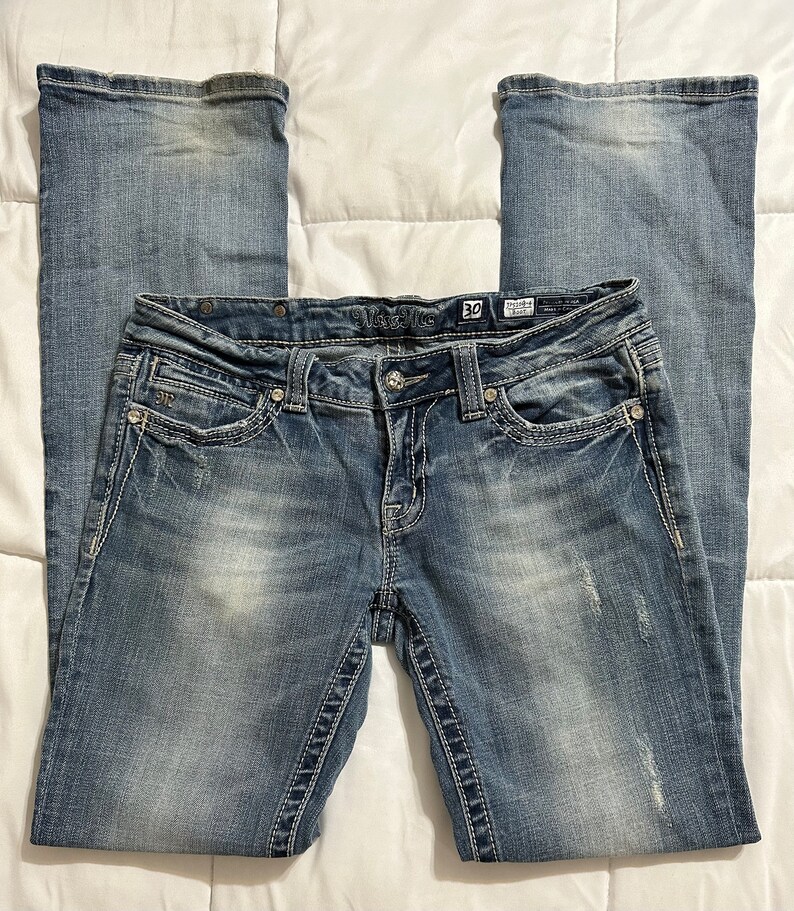 Suchst du Jeans mit besonderem Style? Die Miss Me Royal Radiance Bootcut Jeans für Damen hat genau das! Mittlere Leibhöhe vorne (22,9 cm) und höher hinten (35,6 cm) - sitzt super bequem und formschön. Der Bootcut-Schnitt ist leicht ausgestellt unten, perfekt für Boots oder hohe Schuhe. Mit coolen Strassstein-Verzierungen an den Taschen - das glitzert dezent und macht jede Jeans zum Hingucker. Die Jeans hat diesen lässigen Used-Look mit leichten Verblassungen und Schnurrhaaren. Nicht zu auffällig, aber genau richtig für einen individuellen Style. Fünf-Taschen-Design wie bei klassischen Jeans, also praktisch und stylish zugleich. Die Schrittlänge von 81,3 cm passt für die meisten Größen super. Der Stoff ist weich und beweglich - du kannst dich gut darin bewegen. Perfekt für den Alltag, aber auch für besondere Anlässe geeignet. Miss Me Jeans sind bekannt für gute Passform und Qualität. Diese hier ist keine Ausnahme! Ob zur Bluse, zum T-Shirt oder zum schicken Top - die Jeans macht immer was her. Wäscht sich gut und behält ihre Form. Für alle, die was Besonderes suchen, aber nicht zu ausgefallen - genau dein Ding!
