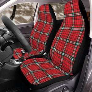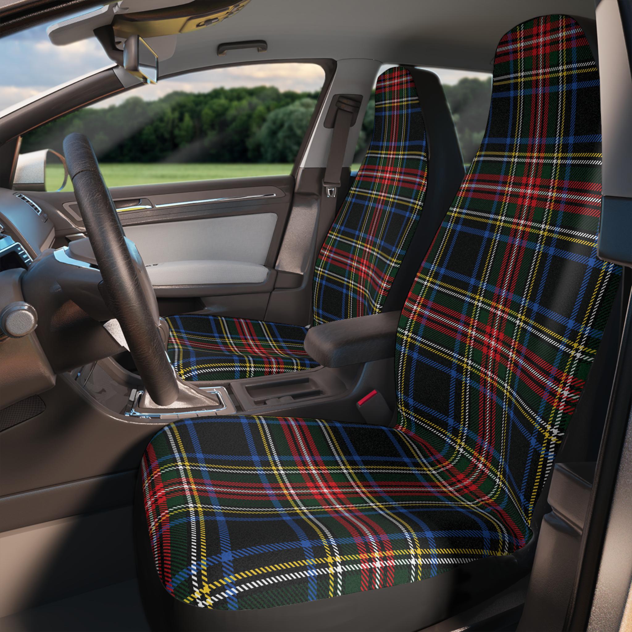 Diese Tartan-Sitzbezüge sehen nicht nur super stylisch aus, sondern schützen deine Autositze auch perfekt! Aus robustem Polyester mit dem klassischen Royal Stewart-Muster. Universal passend für die meisten Autos, SUVs und LKWs. Mit Gummibändern an der Unterseite - sitzen bombenfest und rutschen nicht. Schützt vor Sonne, Schmutz, Haaren und Flecken. Einfach drüberziehen und deine Sitze sehen aus wie neu! Waschbar in der Maschine - also super pflegeleicht. Im Set sind 2 Bezüge für die Vordersitze enthalten. Mach dein Auto-Innenleben gleich viel gemütlicher!