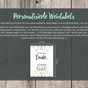 Planst du eine Hochzeit oder suchst ein besonderes Geschenk? Diese personalisierbaren Weinlabel mit Rubbellos sind genau das Richtige! Mit 9x12cm Größe passen sie perfekt auf jede Standard-Weinflasche. Das coole daran: Unter dem goldenen Rubbelherz versteckt sich eine persönliche Nachricht deiner Wahl - ob ein lustiger Spruch, eine romantische Botschaft oder einfach nur \\\Danke\\\. Die Labels sind selbstklebend und leicht anzubringen. In der Lieferung ist eine Anleitung dabei, wie du das alte Etikett entfernen und das neue anbringen kannst. Perfekt für Hochzeiten als Geschenk für Trauzeugen, für Geburtstage, Jubiläen oder einfach mal so als Überraschung für liebe Menschen. Damit wird eine normale Weinflasche zum ganz persönlichen Geschenk, an das sich jeder immer erinnern wird! Die Gäste werden begeistert sein, wenn sie das Rubbelfeld freikratzen und deine persönliche Nachricht entdecken.