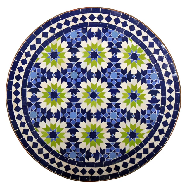 Ein absolutes Kunstwerk für dein Zuhause! Dieser handgefertigte marokkanische Mosaiktisch 'Maar' bringt orientalischen Charme in deine Wohnung oder Garten. Mit 60cm Durchmesser und 75cm Höhe ist er perfekt als Beistelltisch oder für die Terrasse. Über 450 einzelne Keramiksteine in grün/weiß wurden von erfahrenen Handwerkern liebevoll zusammengesetzt. Jeder Tisch ist ein Unikat mit kleinen Unregelmäßigkeiten, die seinen Charakter unterstreichen. Das schwarze Eisengestell und die stabile Betonplatte (insgesamt 22,5kg) machen ihn robust und langlebig. Wetterfest, aber nicht frostsicher - also im Winter besser reinholen. Die Lieferung erfolgt in zwei Paketen (Platte und Gestell), die manchmal an unterschiedlichen Tagen ankommen. Echte Handwerkskunst aus Marokko!