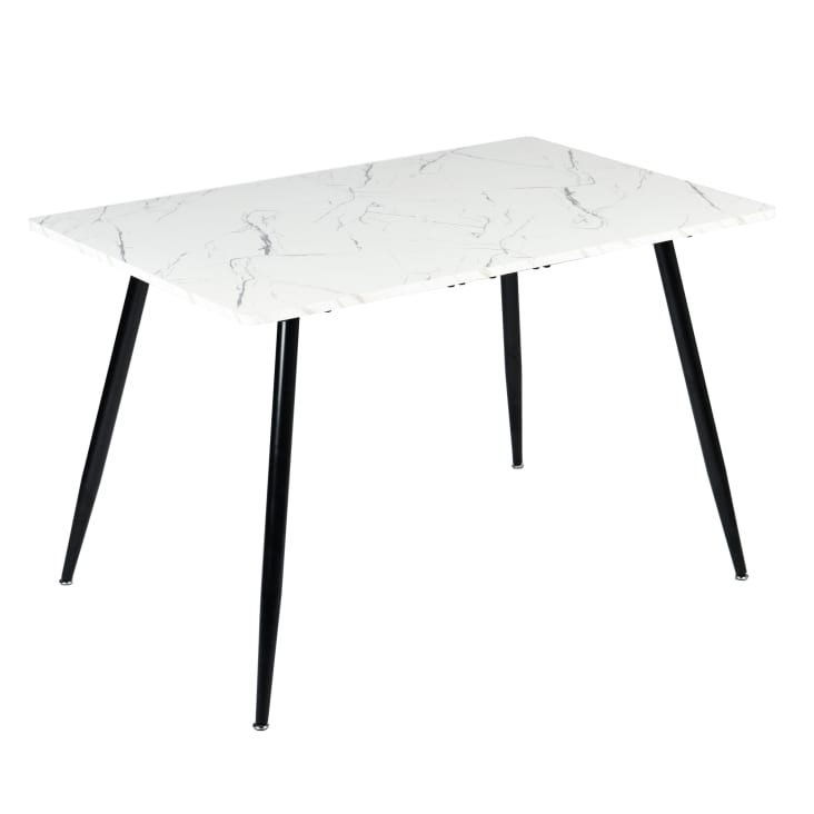 Perfekter Esstisch für Familienfeiern! Der IDMarket Phoenix Tisch ist ausziehbar von 110cm auf 150cm - ideal wenn mal wieder Besuch kommt. Mit weißer Marmoroptik-Platte und schwarzen Holzbeinen sieht er einfach stylisch aus. Die 5cm dicke Platte und breiten Füße geben absolute Stabilität. Maße: 110-150cm Länge, 110cm Breite, 75cm Höhe. Aus melaminbeschichteter Spanplatte - pflegeleicht und robust. Für 4-6 Personen und einfach selbst zusammenzubauen. Verleiht deinem Esszimmer diesen modernen Loft-Look!