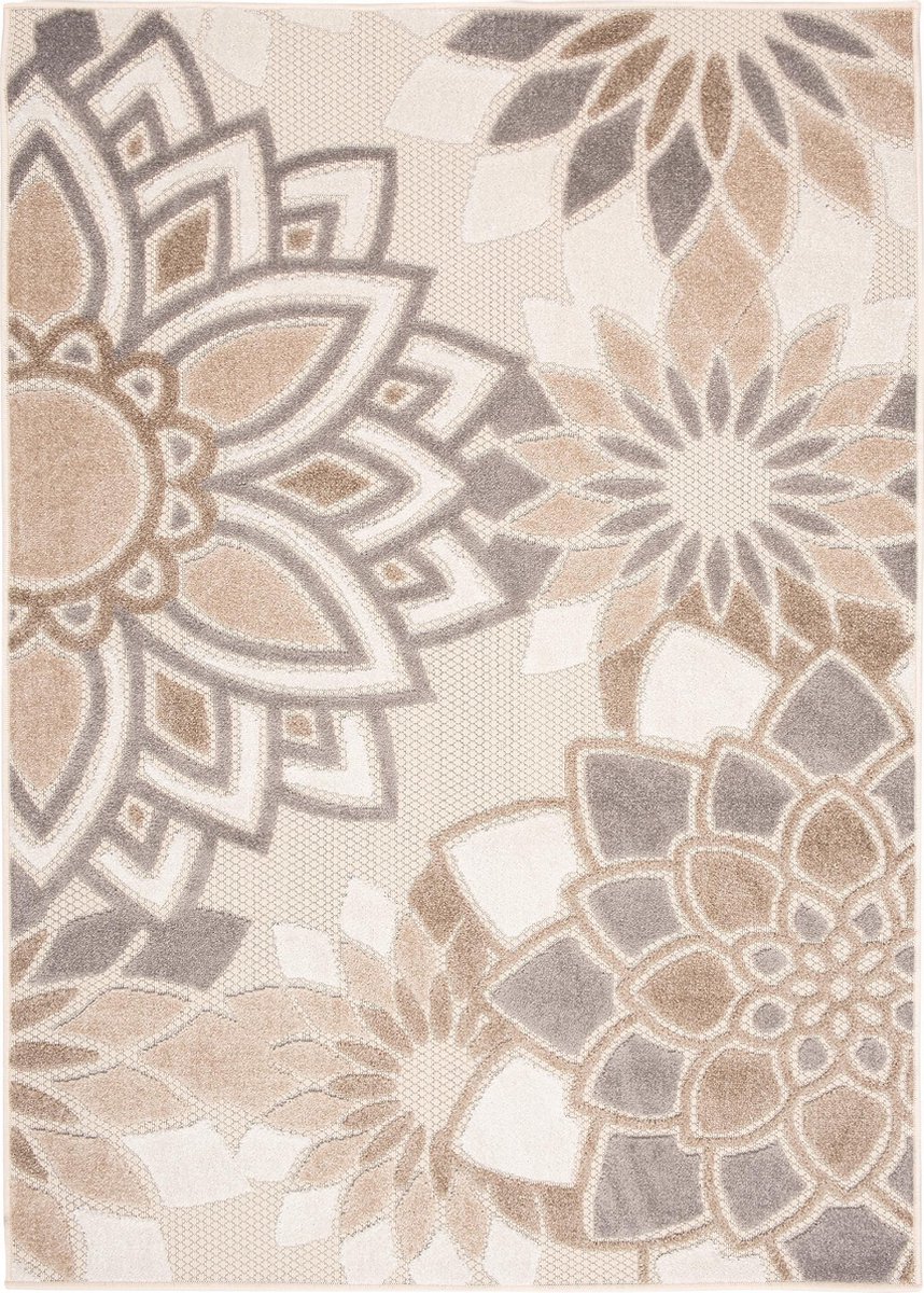 • TAPISO Rundteppich Outdoor 240x240cm - Wetterfest Creme Beige Blumenmuster