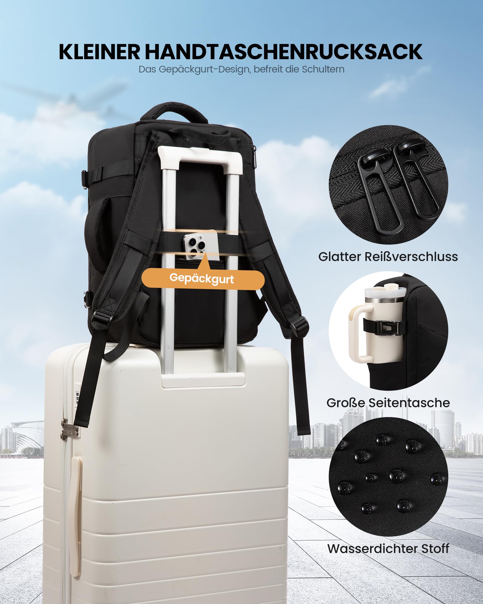 Nicht nur für Flugreisen - auch perfekt als Tagesrucksack für Stadt, Arbeit oder Wandern. Dein zuverlässiger Begleiter für alle Abenteuer!