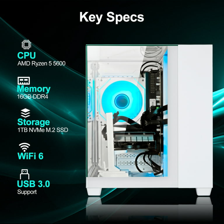 Zockermäuse, aufgepasst! Dieser SYSTEMTREFF Gaming PC ist der perfekte Einstieg in die Gaming-Welt. Mit AMD Ryzen 5 5600X Prozessor (6 Kerne, bis zu 4,6 GHz Turbo) und AMD Radeon RX 6600 Grafikkarte (8GB) hast du genug Power für alle aktuellen Games. 16GB DDR4 RAM mit 3600MHz sorgen für flüssiges Spielvergnügen, dazu 512GB NVMe SSD für superschnelle Ladezeiten und 1TB HDD für massig Speicherplatz. Windows 11 Pro ist schon vorinstalliert - einfach anschließen und loslegen! Das coole Gehäuse mit Glasfenster und RGB-Beleuchtung sieht dabei noch richtig stylisch aus. Perfekt für Einsteiger und Casual-Gamer, die in First-Person-Shooter, Rollenspiele oder Online-Games einsteigen wollen. Made in Germany mit Qualitätskomponenten - da kannst du dich drauf verlassen! Auch für Streaming oder Videobearbeitung super geeignet. Einfach den Traum-PC auspacken und sofort ins Spielvergnügen starten!