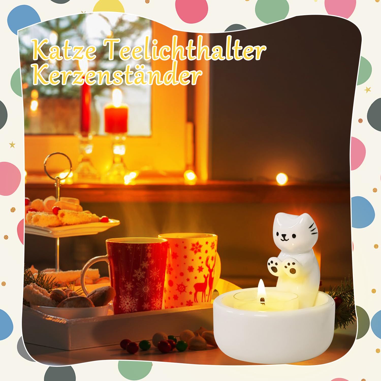 Oh, wie süß! Dieser Katzen-Teelichthalter wird das Herz eines jeden Katzenliebhabers höher schlagen lassen. Die kleine Katze, die sich an ihrem Teelicht wärmt, schafft sofort eine gemütliche Atmosphäre in deinem Zuhause. Aus robustem Harz handgefertigt und liebevoll bemalt, ist dieses Stück nicht nur niedlich, sondern auch langlebig. Mit seiner kompakten Größe findet er überall Platz - auf dem Couchtisch, Nachttisch, Bücherregal oder Schreibtisch. Perfekt für ruhige Abende oder als Geschenk für Geburtstage, Weihnachten oder einfach so. Passt für Standard-Teelichter bis 4cm Durchmesser. Eine entzückende Ergänzung für jede Deko-Sammlung, die Wärme und Persönlichkeit in deine vier Wände bringt!