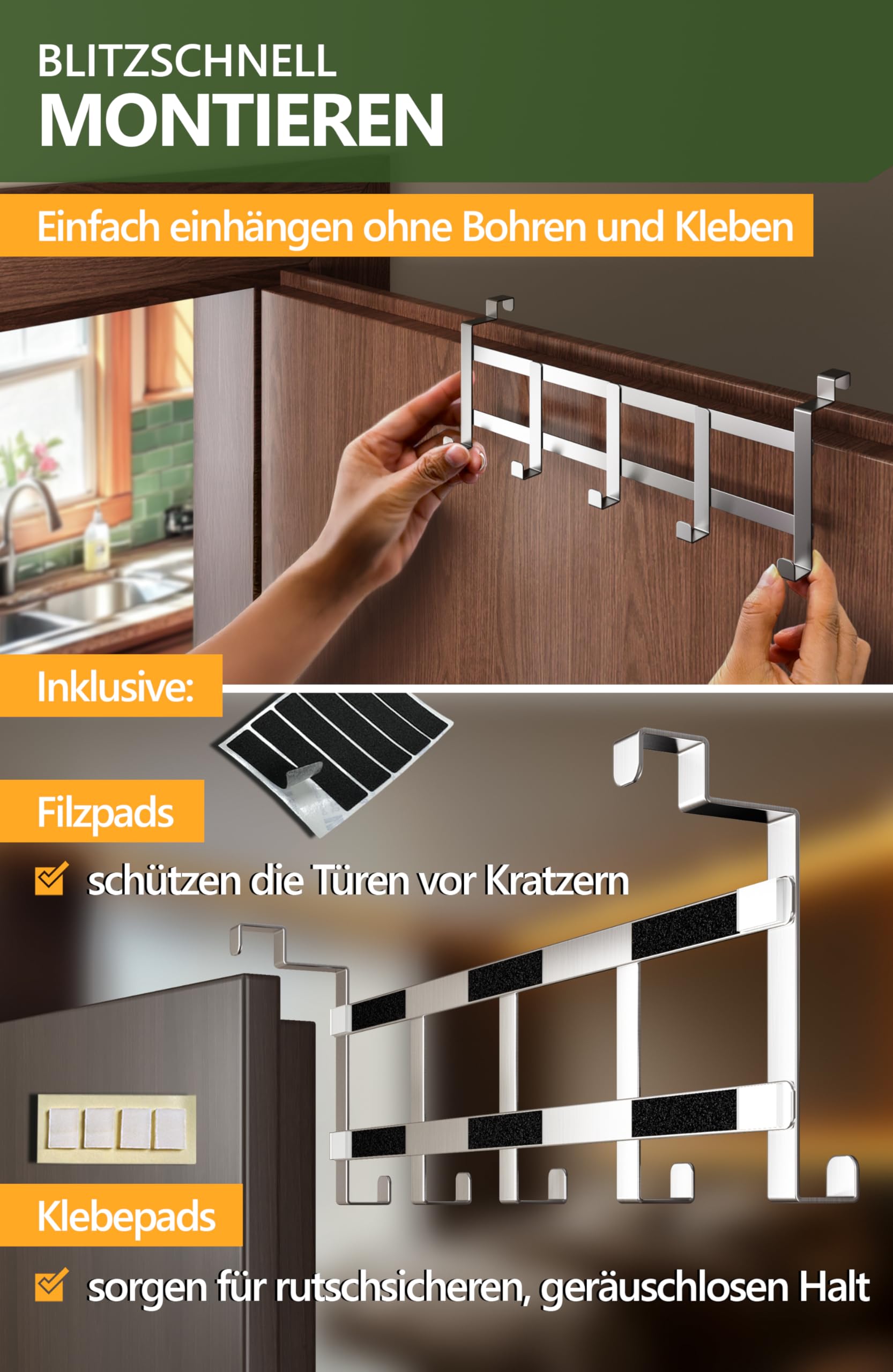 Platzprobleme? Diese 4 S-förmigen Türhaken von Junvaia schaffen Abhilfe! Aus robustem Edelstahl - rostfrei und super langlebig! Mit Gummibeschichtung - kratzt nicht an der Tür und rutscht nicht! Jeder Haken trägt bis zu 20 Pfund - da hängt auch der dicke Wintermantel! Einfach über die Tür hängen - keine Montage nötig! Passt an fast jede Tür bis 2cm Dicke - Wohnzimmer, Bad, Küche oder Schrank! Perfekt für Kleidung, Handtücher, Taschen oder Küchenutensilien! Die flache Oberseite passt auch in schmale Türspalte - Tür schließt komplett! Spart unendlich viel Platz - besonders in kleinen Wohnungen! Einfach über die Tür hängen, Sachen aufhängen und dich über mehr Ordnung freuen! So wird jede Tür zur praktischen Garderobe!