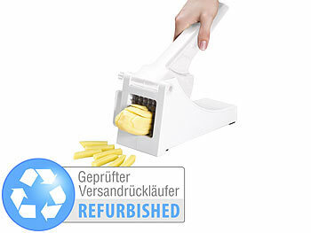 Perfekte Pommes ganz einfach selbst gemacht! Mit diesem Profi-Pommesschneider von Rosenstein & Söhne werden Kartoffeln im Handumdrehen zu gleichmäßigen, knusprigen Frites. Einfach Kartoffel reinlegen, den großen Hebel drücken - und schon hast du perfekte Stäbchen!\\n\\nDas 3-in-1 Set kommt mit drei verschiedenen Schneidegittern (9x9mm, 10,5x10,5mm und 13x13mm), sodass du die Dicke deiner Pommes genau nach Wunsch wählen kannst. Ob dünne French Fries oder dicke Steakhouse-Pommes - alles ist möglich.\\n\\nDer praktische Saugfuß an der Unterseite sorgt für sicheren Halt auf der Arbeitsplatte. Nichts verrutscht mehr! Und nach dem Schneiden wandern alle Teile einfach in die Spülmaschine - super hygienisch und zeitsparend.\\n\\nMit den Maßen 26,8 x 13,5 x 10,3 cm ist der Schneider kompakt und passt in jede Küche. Aus hochwertigem Stahl und Kunststoff gefertigt, hält er jahrelang. Nicht nur für Kartoffeln geeignet - auch anderes festes Gemüse wie Karotten oder Zucchini lassen sich damit perfekt schneiden. Ein echter Küchenhelfer, der sich schnell bezahlt macht!