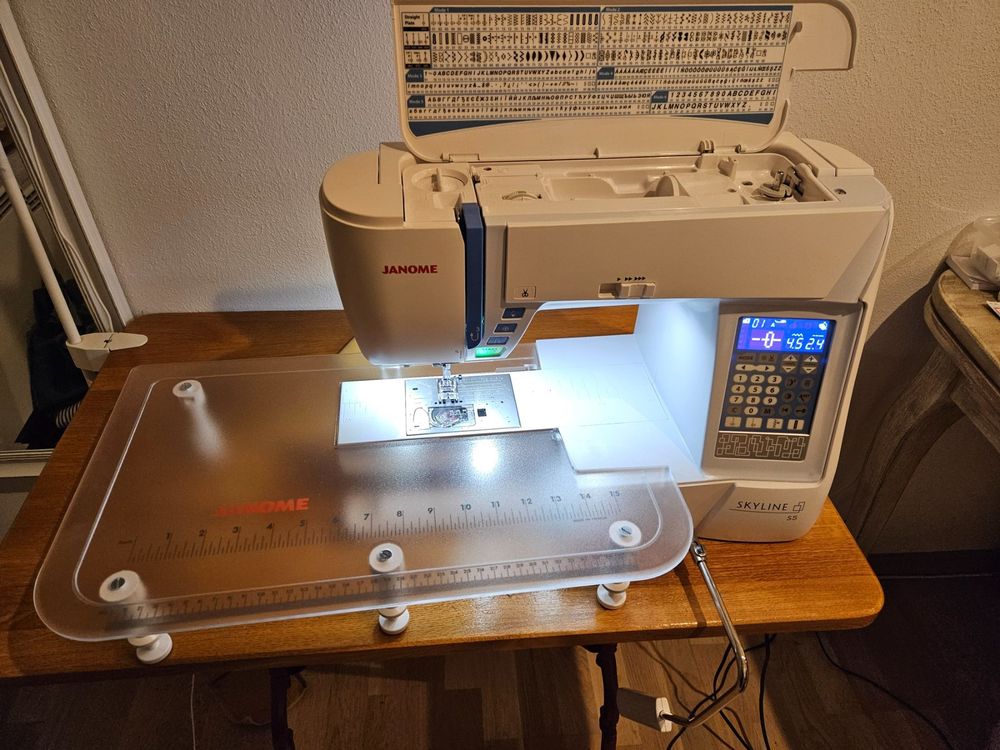 Nähen wie ein Profi - mit der Janome Skyline S5! Diese Haushaltsnähmaschine hat alles, was das Nähherz begehrt: Satte 170 verschiedene Stiche, 10 automatische Einstufenknopflöcher und 4 Nähschriften für kreative Projekte. Das Superior Feed System Plus (SFS+) sorgt für perfekten Stofftransport - selbst bei dickeren Materialien kein Problem! Automatische Fadenspannung - nie wieder nerviges Einstellen! Der klemmfreie Horizontalgreifer arbeitet super sauber und zuverlässig. Mit 7-Segment-Transporteur für präzise Näharbeiten. Noch mehr Features: Elektrische Fadenschere, beleuchtetes LC-Display, 6 weiße LEDs für perfekte Ausleuchtung, Start/Stopp-Taste für komfortables Nähen ohne Pedal, Stichplattenschnellwechsel und Freiarm/Flachbett-Funktion. Der Arbeitsbereich von 210 x 120 mm gibt dir genug Platz für größere Projekte. Ob Kleidung, Home Deco oder kreative Näharbeiten - mit dieser Maschine meisterst du jedes Projekt! Perfekt für ambitionierte Hobbynäher und Semi-Profis. Einfach bedienbar, aber mit Profi-Features - die ideale Maschine für alle, die mehr können wollen als nur geradeaus nähen! Investition, die sich lohnt - mit Janome Qualität, die seit Jahren überzeugt!