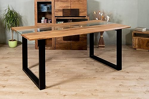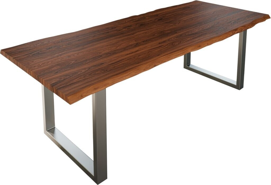 Das Akazienholz in Nussbaum-Optik hat eine wunderschöne Maserung und ist härter als Eiche! Das geschlossene X-Gestell in Edelstahl-Optik gibt ihm modernen Halt. Da es sich um ein Naturprodukt handelt, gibt es kleine Unregelmäßigkeiten wie Astlöcher - das macht den Charakter aus. Einfach mit einem feuchten Tuch abwischen und schon strahlt er wieder. Perfekt für alle, die Individualität und Qualität lieben!