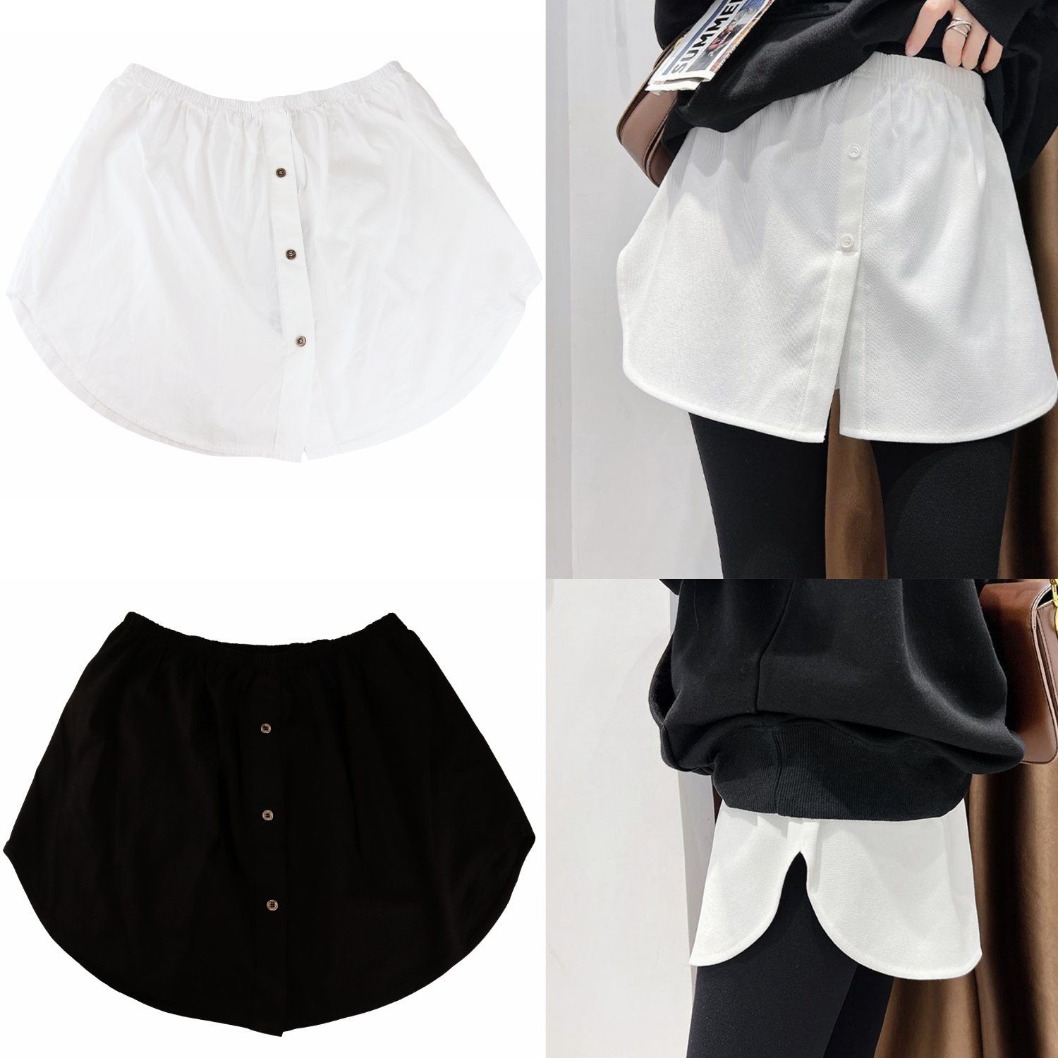 Hey, dieser Blusenrock von SASSYCLASSY ist ja mal eine geniale Idee! Stell dir vor: Du ziehst einfach diesen Shirt-Extender unter dein Lieblingsshirt oder -kleid und schon sieht es aus, als würdest du eine stylische Bluse darunter tragen. Die dekorative Knopfleiste und die sanft abgerundeten Säume sehen total authentisch aus und verleihen deinem Outfit sofort mehr Tiefe und Eleganz. Der elastische Bund sitzt super bequem und verrutscht nicht, während der locker fallende Schnitt eine schmeichelhafte Silhouette zaubert. Hergestellt aus 100% Polyester ist der Blusenrock pflegeleicht, knitterarm und formbeständig - einfach bei 30°C waschen und bei niedriger Temperatur bügeln. Perfekt fürs Büro, besondere Anlässe oder einfach um deinen Alltags-Look aufzuwerten! Ob mit Leggings, Röcken oder Hosen - dieses vielseitige Teil lässt sich mit fast allem kombinieren und sorgt für einen mühelos stylischen Look ohne dass du mehrere Kleidungsschichten tragen musst. In den Größen S/M und L/XL ist für jede Figur was dabei!