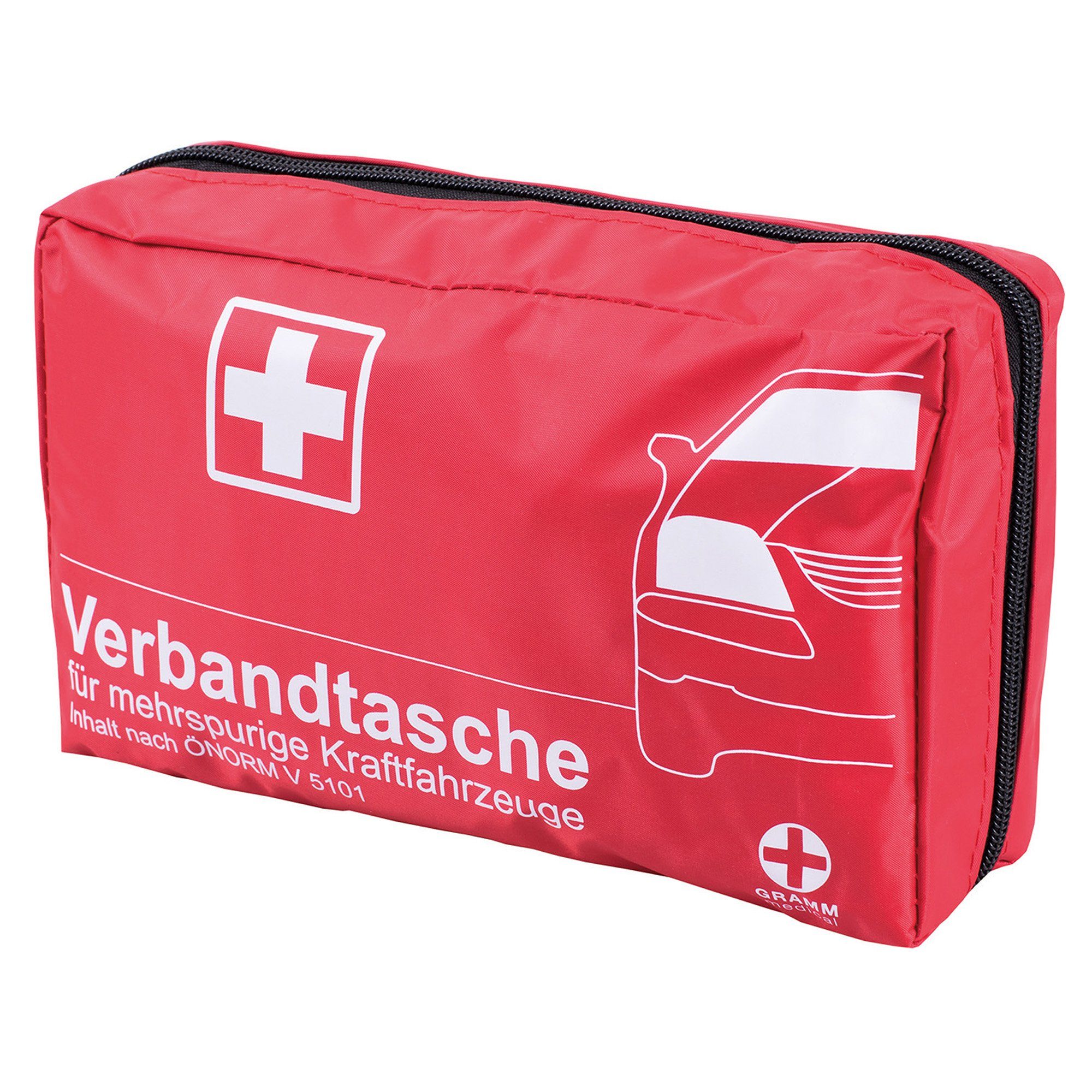 In der roten Tasche mit Reißverschluss ist alles übersichtlich verstaut. Platzsparend im Kofferraum unterzubringen - aber immer griffbereit im Notfall.