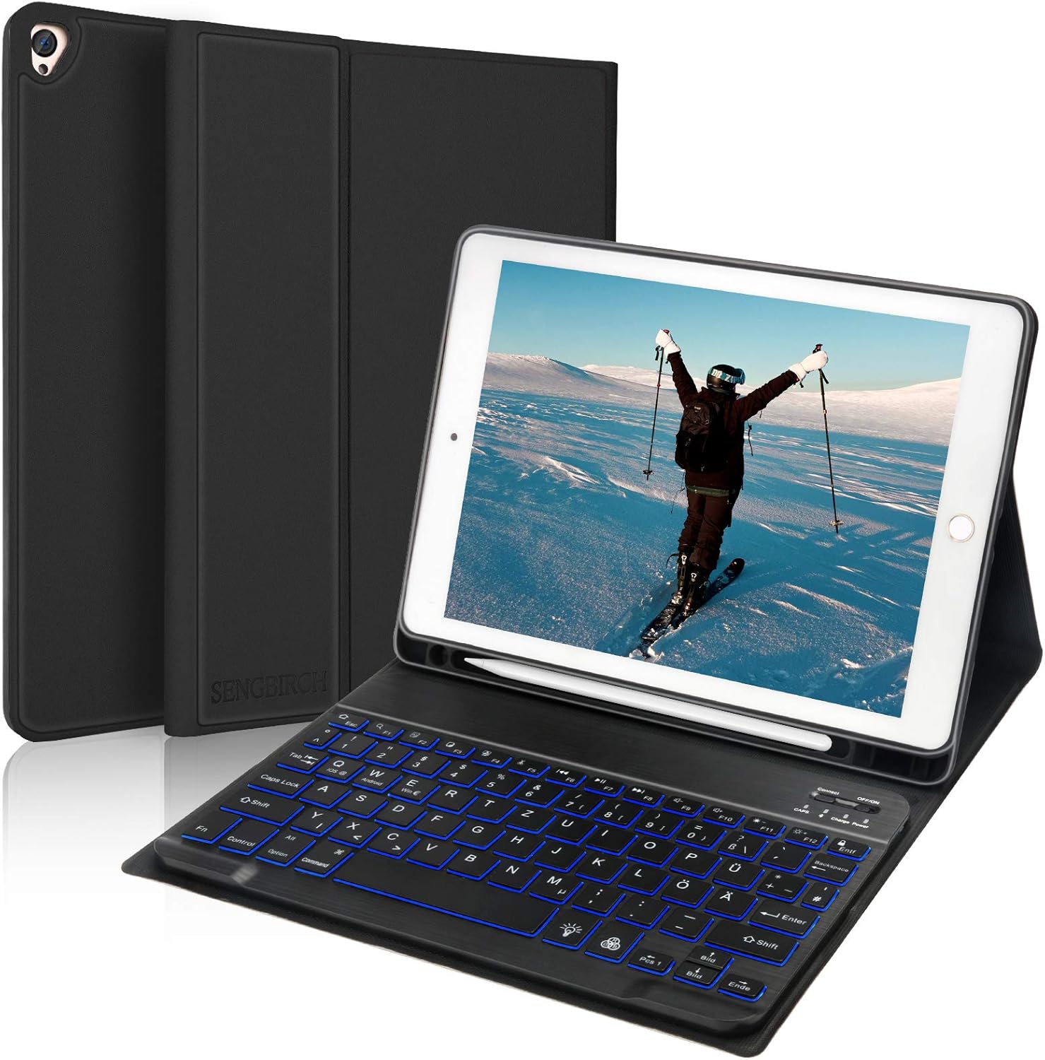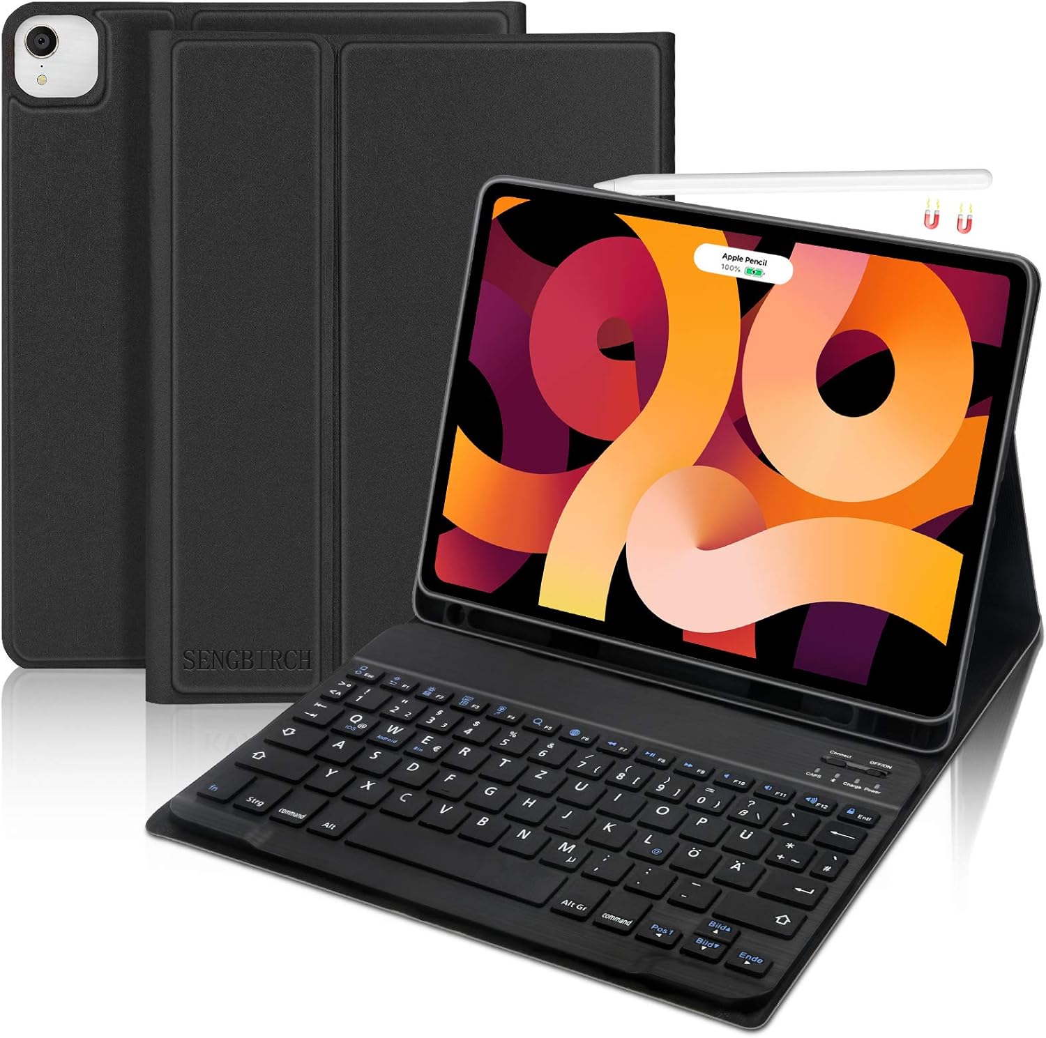 Boah, diese Tastatur macht aus deinem iPad Air 11 oder iPad Pro 11 einen echten Laptop-Ersatz! Mit deutscher QWERTZ-Tastatur, integriertem Multi-Touch-Touchpad und sogar Hintergrundbeleuchtung - was will man mehr? Die Tastatur verbindet sich per Bluetooth 5.0 und hat eine mega Akkulaufzeit von bis zu 100 Stunden! Das Touchpad unterstützt alle iPadOS-Gesten und macht die Bedienung superintuitiv. Die Tasten haben einen angenehmen Druckpunkt und die drei Helligkeitsstufen der Beleuchtung passen sich jeder Lichtsituation an. Dein iPad wird magnetisch an der Rückseite befestigt und ist damit sicher und geschützt. Auch dein Apple Pencil findet Platz zum Laden. Perfekt für unterwegs, im Café oder im Homeoffice - damit arbeitest du einfach effizienter. Mit 940 g ist sie robust aber nicht zu schwer. Kompatibel mit iPad Air 11 (M3 2025/M2 2024) und iPad Pro 11 Zoll der 1.-4. Generation. Einfach einschalten, verbinden und loslegen!