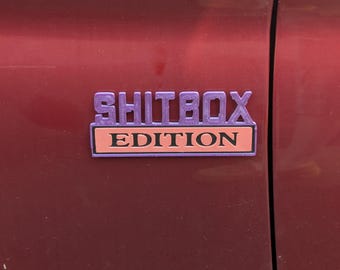 Zeig, dass du dein Auto liebst - egal welchen Zustand es hat! Das SHITBOX EDITION Emblem ist der perfekte selbstironische Blickfang für alle Auto-Fans. Ob alte Rostlaube, treuer Alltagsbegleiter oder driftbereiter Beater - dieses Emblem sagt mit einem Augenzwinkern: Wahre Liebe zum Auto hängt nicht vom Lackzustand ab! Aus robustem, wetterfestem ABS-Material gefertigt - hält auch bei Wind und Wetter! Maße: 7,9 x 3,3 x 0,4 cm - auffällig aber nicht übertrieben. Einfache Montage: Selbstklebend - einfach Schutzfolie abziehen und an Karosserie, Heckklappe oder im Innenraum anbringen! Erhältlich in mehreren auffälligen Farbkombinationen - hier in schwarz/rot! Ein echter Hingucker und Garant für schmunzelnde Blicke! Perfekt für alle, die nicht alles so ernst nehmen und ihren fahrbaren Untersatz mit Humor feiern! Kultig, ehrlich und absolut einzigartig - hol dir dein SHITBOX-Emblem!