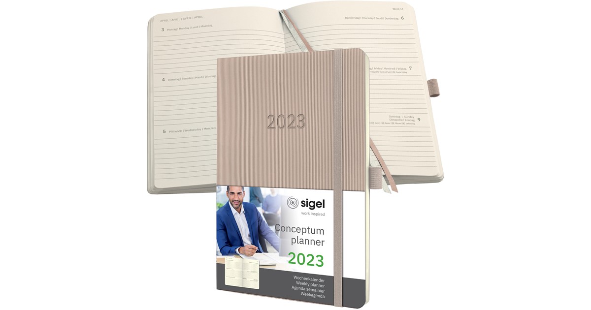 Eleganter Wochenkalender 2022 von SIGEL Conceptum im A5-Format (13,5x21cm). 192 Seiten mit chamois-farbenem Papier, Monats- und Jahresübersichten. Features: Gummibandverschluss, Stiftschlaufe, Quickpocket, Archivtasche und 2 Lesebändchen. Flexibles Softcover in taupe mit edler Oberflächenstruktur. PEFC-zertifiziertes Papier. Perfekt organisiert durchs Jahr - ob im Büro oder unterwegs. Inklusive Stickerbogen für individuelle Markierungen.