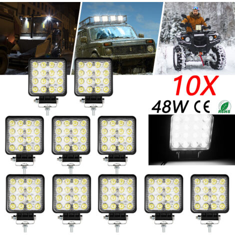 Boah, diese SKYWORLD LED-Scheinwerfer sind einfach der Hammer! Mit 48W Gesamtleistung bringen die vier kleinen Kraftpakete richtig was weg. Das spot-weiße Licht ist so krass hell, dass du bei Nachtfahrten echt alles siehst. Und keine Sorge vor Regen - mit IP67 Wasserschutz halten die Dinger echt alles aus.\\n\\nDie Verarbeitung ist top: Gehäuse aus Alu-Druckguss, effiziente Kühlung durch die Thermorippen und über 30.000 Stunden Lebensdauer. Die 3,3-Zoll-Mini-Form sieht nicht nur clean aus, sondern passt auch an fast jedes Fahrzeug. Egal ob Auto, SUV, ATV, Traktor oder LKW - mit 12V/24V Kompatibilität machst du nichts falsch.\\n\\nMontage ist total easy: Kannst die Teile einfach an der Motorhaube oder Stoßstange befestigen. Der 120-Grad-Strahlwinkel gibt dir ein mega gleichmäßiges Lichtfeld. Und das Beste: Die verstellbare Halterung lässt sich flexibel positionieren. Anti-Schock, Anti-Regen, Anti-Fog - einfach unkaputtbar! Perfekt für Offroad-Abenteuer, Arbeitsfahrzeuge oder wenn du einfach bessere Sicht brauchst. Die Dinger rocken echt jeden Einsatz!
