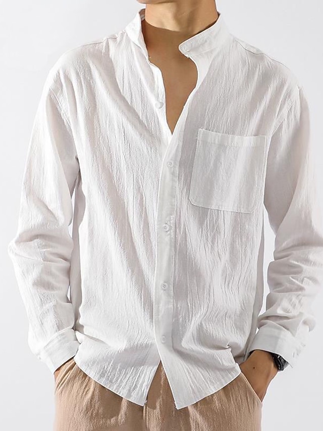Der Stehkragen gibt dem Hemd eine moderne, elegante Note. Es sieht aus wie Business Casual, fühlt sich aber an wie Freizeitmode. Einfach das perfekte Hemd für den Übergang zwischen Arbeit und Freizeit.