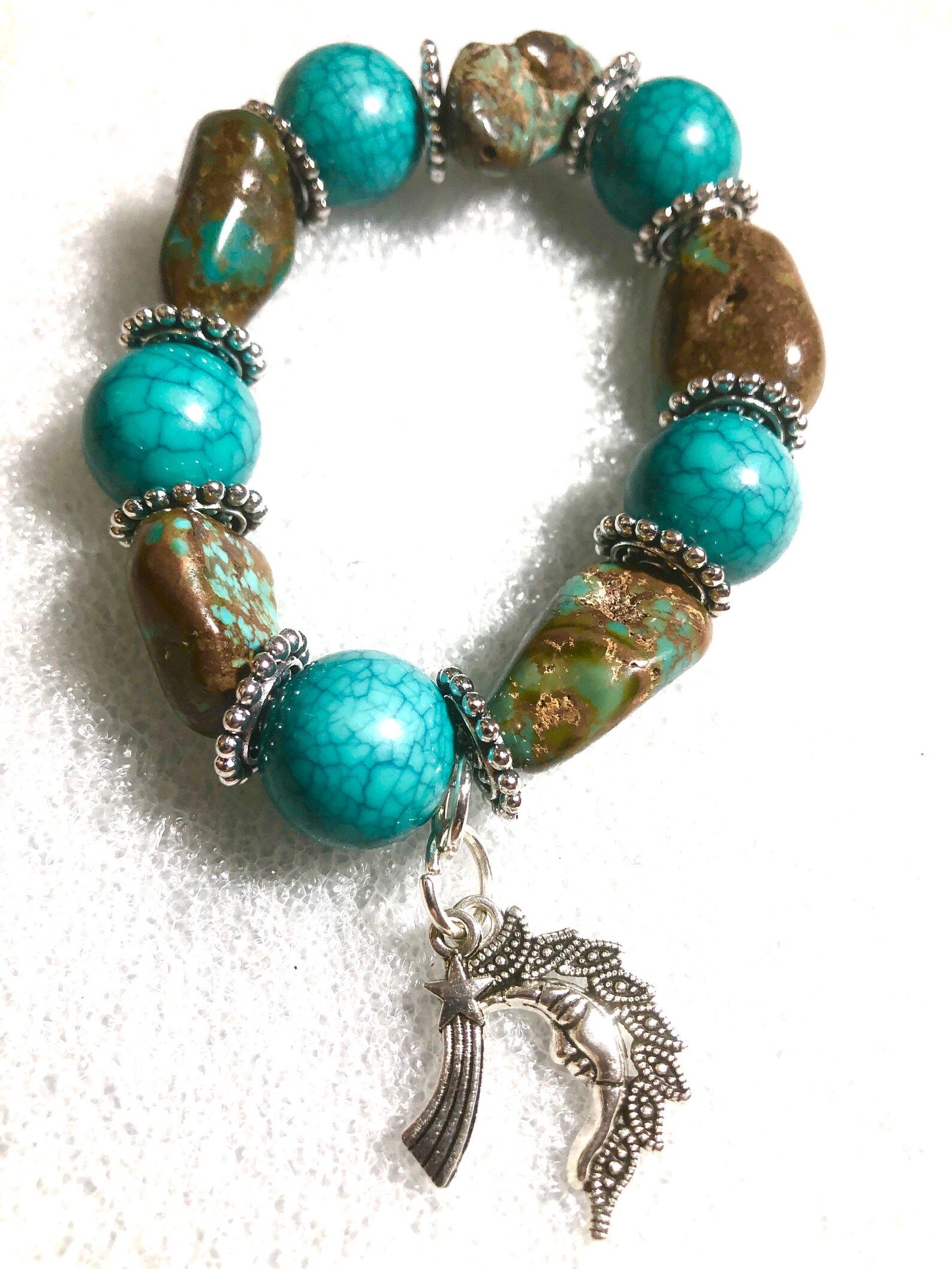 Wow, dieses Edelstein-Armband ist ja mal richtig schön! Aus natürlichem Opal gefertigt - jede Perle ist ein Unikat mit eigener Textur und Farbe. Mit 8mm Perlen und elastischer Schnur - passt sich super an und ist mega bequem zu tragen. Die Kombination aus Edelsteinen und spirituellen Symbolen soll positive Energie bringen - ob man dran glaubt oder nicht, sieht auf jeden Fall toll aus! Perfekt als Geschenk oder einfach für dich selbst. Kannst du alleine tragen oder mit anderen Armbändern kombinieren - total vielseitig. Ob als Accessoire für den Alltag oder für besondere Anlässe - dieses Armband macht immer was her. Einfach überstreifen und sich schön fühlen!