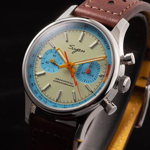 Uhren-Liebhaber, aufgepasst! Diese Sugess Chronograph Uhr ist einfach nur atemberaubend. Mit dem Sea-Gull ST1901 Handaufzugswerk, Schwanenhals-Regler in Gold und 21 Schmucksteinen ist sie technisch auf höchstem Niveau. Das Panda-Design mit aquagrünen Sub-Zifferblättern und dem coolen \Lightning\-Sekundenzeiger ist ein absoluter Hingucker. Das Saphirglas schützt vor Kratzern, der ausstellbare Gehäuseboden lässt dich das präzise Werk bewundern. Mit 40 mm Durchmesser und 13,5 mm Dicke sitzt sie perfekt am Handgelenk. Das Lederarmband in Aqua-Grün rundet das Gesamtbild ab. 45 Stunden Gangreserve und 21600 A/h Schlagrate sorgen für zuverlässige Performance. Komplett mit Einzelhandelsverpackung und Karte - ein Sammlerstück, das sich sehen lassen kann. Egal ob für die eigene Sammlung oder als besonderes Geschenk - diese Uhr macht immer eine gute Figur und zeigt, dass du was von Qualität verstehst!