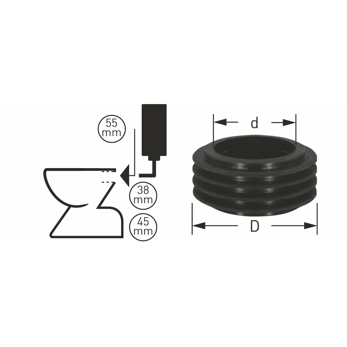 STEDO Euro-WC-Verbinder Gummi Weiß - Toilettenverbinder Ø55mm Für 38-45mm Rohre