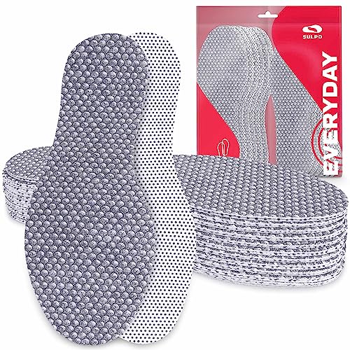 Endlich warme Füße im Winter! Diese 2 Paar Thermo-Einlegesohlen von SULPO sind deine Rettung gegen kalte Füße. Mit kuscheliger Plüsch-Oberseite für sofortige Wärme. Der Schaumkern dämpft jeden Schritt - super bequem auch bei langem Stehen. Rutschhemmende Unterseite hält die Sohle sicher im Schuh. Atmungsaktiv und feuchtigkeitsregulierend - Füße bleiben trocken und warm. Größe 40, aber zuschneidbar für andere Größen. Perfekt für Stiefel, Sneaker, Arbeits- oder Wanderschuhe. Einfach inschaum, zuschneiden, genießen! Sag kalten Füßen Lebewohl - mit diesen kuschelweichen Einlegesohlen!