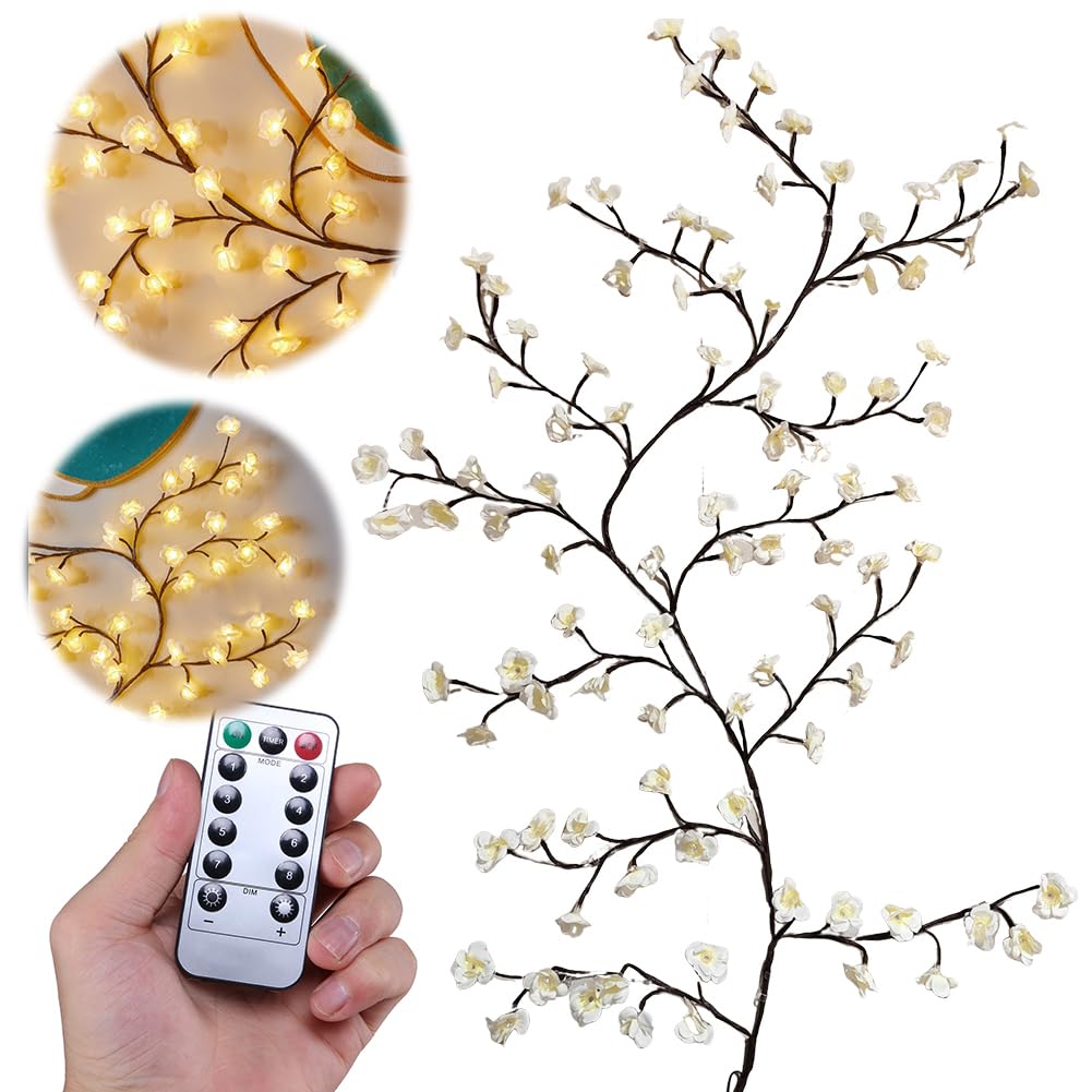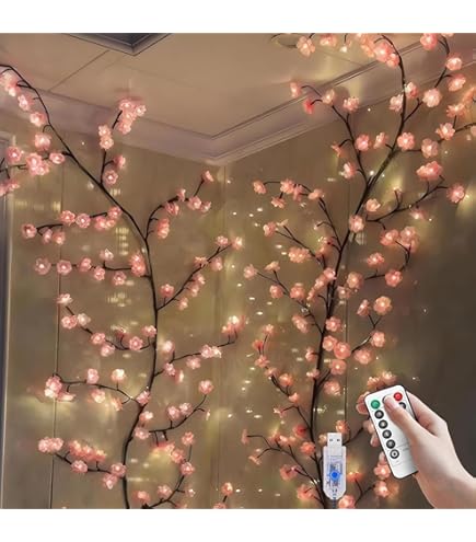 • SUPRBIRD Kirschblüten Lichterkette 96 LEDs | Mit Fernbedienung & Timer | Biegbare Zweige 190cm