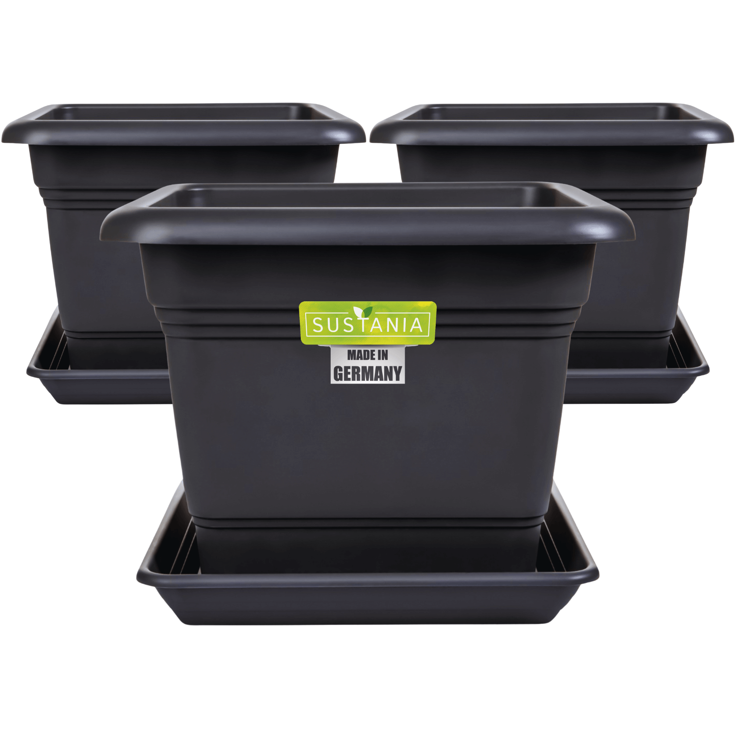 Deutsche Qualität für deine Pflanzen! Diese beiden rechteckigen Blumentöpfe sind einfach klasse. Maße: 58x58 cm - genug Platz für große Pflanzen. Mit passenden Untersetzern - schützt deine Böden. Aus robustem, wetterfestem Kunststoff - für drinnen und draußen. UV-beständig - verblasst nicht in der Sonne. Mit Abflusslöchern - verhindert Staunässe. Dunkelgraue, matte Oberfläche - passt zu jedem Stil. Hergestellt in Deutschland - beste Qualität garantiert. Perfekt für Balkon, Terrasse, Garten oder Wohnzimmer. Machen deine Pflanzen zum echten Hingucker. Einfach bepflanzen, gießen und sich am üppigen Grün erfreuen!