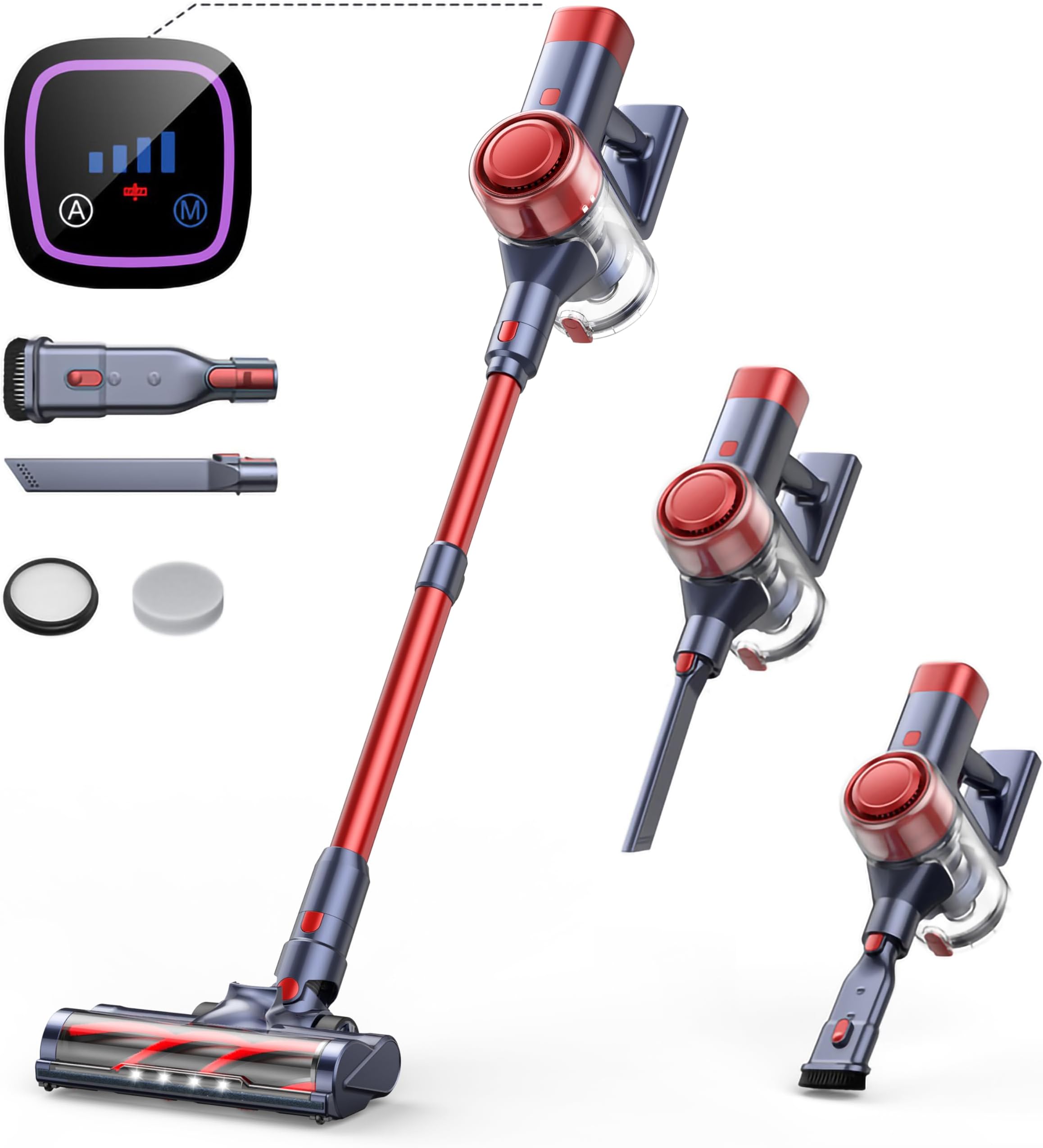 Endlich kabellos und kraftvoll staubsaugen! Dieser SUXIANGVAC Staubsauger bringt satte 48KPa Saugkraft bei 500W Motorleistung - damit bekommst du auch tiefsitzenden Schmutz und Tierhaare problemlos weg. Bis zu 55 Minuten Laufzeit mit dem 2500mAh Akku reichen für Wohnungen bis 250m². Das selbststehende Design ist genial - einfach abstellen, ohne was anzukratzen. Die wandmontierte Ladestation sorgt für Ordnung und volle Power in nur 4 Stunden. Drei Saugstufen (MIN, MID, MAX) und LED-Display machen die Bedienung super einfach. Die spezielle V-Bürste für Tierhaare und die 6-fache Filterung sind perfekt für Tierbesitzer. Mit 1,5L Behälter und LED-Beleuchtung für dunkle Ecken. Saugen war noch nie so entspannt!