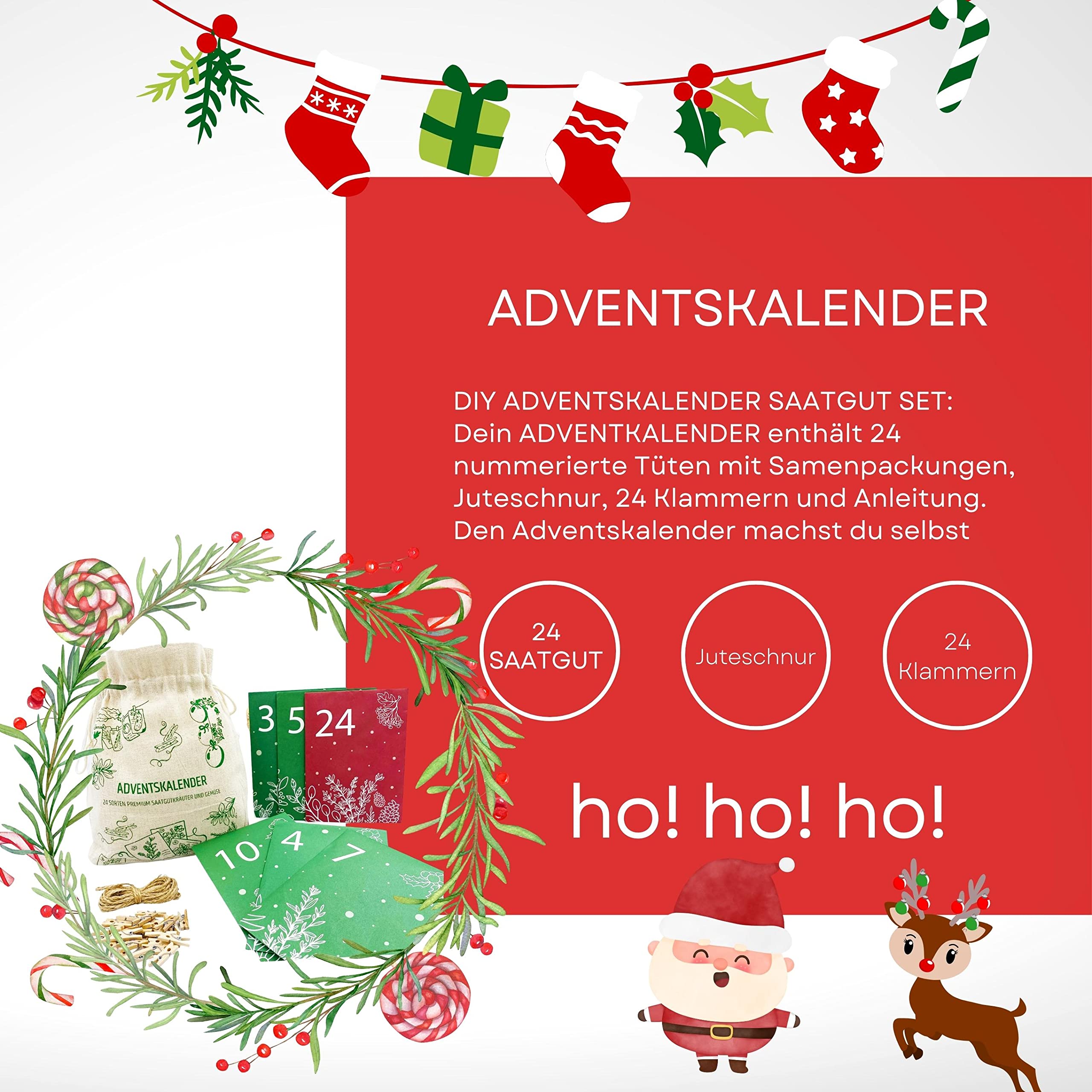 Was für eine geniale Idee - ein Adventskalender für Garten-Fans! 24 verschiedene Samen-Sorten erwarten dich: Blumen, Gemüse und Kräuter. Jeden Tag eine neue Überraschung - von Sonnenblumen über Cayennepfeffer bis zu Basilikum. Am 25. Dezember kommt dann das Highlight: Ein zweiteiliges Mini-Gewächshaus mit 24 Anbaufächern! Dazu gibt's Erdtabletten für über 2 Liter Anzuchterde und ein süßes Schäufelchen. Alles 100% gentechnikfrei und mit Wachstumsgarantie. Perfekt für alle, die schon im Winter mit dem Gärtnern starten wollen. Die Pflanzen können dann im Frühling nach draußen. Mach den Dezember zu einer grünen Überraschungszeit! Ideal als Geschenk für Garten-Liebhaber oder einfach für dich selbst. So macht Warten auf Weihnachten Spaß!