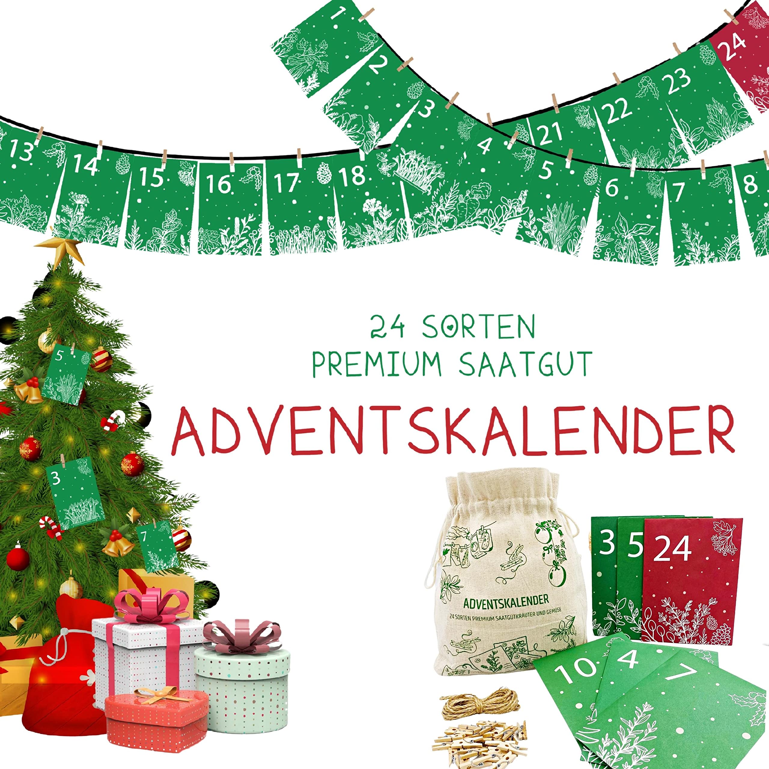 • Saatgut Adventskalender 2025 - 24 Sorten Blumen, Gemüse & Kräuter Mit Gewächshaus