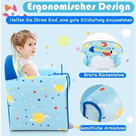 Wie süß ist denn dieses Kindersofa?! Aus weichem Samtstoff mit hochwertigem Schwamm gefüllt - mega bequem für die Kleinen. Maße: 50x40x44 cm, Sitzhöhe 19 cm. Hält bis 50 kg aus und hat rutschfeste Füße. Die ergonomische Rückenlehne stützt perfekt und fördert gesundes Sitzen. Ohne Montage - einfach auspacken und loslegen. Dein Kind wird es lieben! Perfekt fürs Kinderzimmer, Wohnzimmer oder Kindergarten. Zum Lesen, Spielen, Ausruhen - das eigene Sofa macht einfach stolz! In hellblau - ein traumhaftes Geschenk für Kinder von 1,5-3 Jahren.