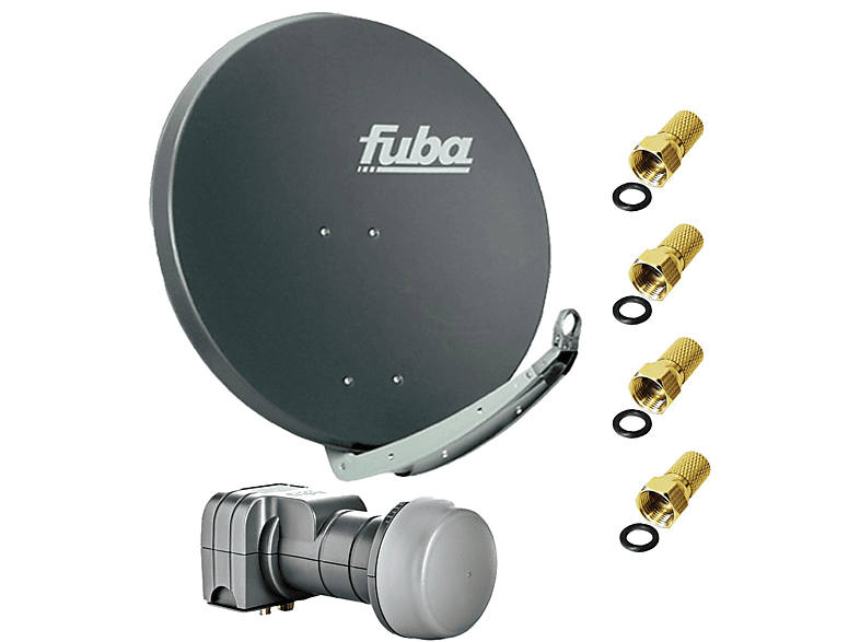 Boah, diese Profi-Sat-Anlage hat alles, was du für perfekten TV-Empfang brauchst! Das Komplettset kommt mit der Fuba DAL 800 Satellitenschüssel in Anthrazit - die ist total stabil und super einfach zu montieren. Der Aluminium-Reflektor (74x84 cm) ist pulverbeschichtet und absolut korrosionsfest.\\n\\nDazu gibt's den HB-DIGITAL 5/12 Multischalter, der das Signal von einem Satelliten auf bis zu 12 Receiver verteilt - perfekt für Mehrfamilienhäuser oder wenn du mehrere TVs hast. Der UHD-Quattro-LNB mit nur 0,1 dB Rauschmaß sorgt für gestochen scharfe Bilder in 4K und Ultra HD.\\n\\nMontage? Kein Problem! Der klappbare LNB-Tragarm macht den Aufbau zum Kinderspiel, und die innenliegende Kabelführung sieht super ordentlich aus. Mit den 35 vergoldeten F-Steckern bist du auch bei der Verkabelung bestens ausgestattet.\\n\\nOb für Sky HD+, DVB-S2 oder 4K - diese Anlage rockt einfach alles. Selbst bei schlechtem Wetter bleibt das Signal stabil. Einfach aufbauen und sich über perfekten TV-Genuss freuen!