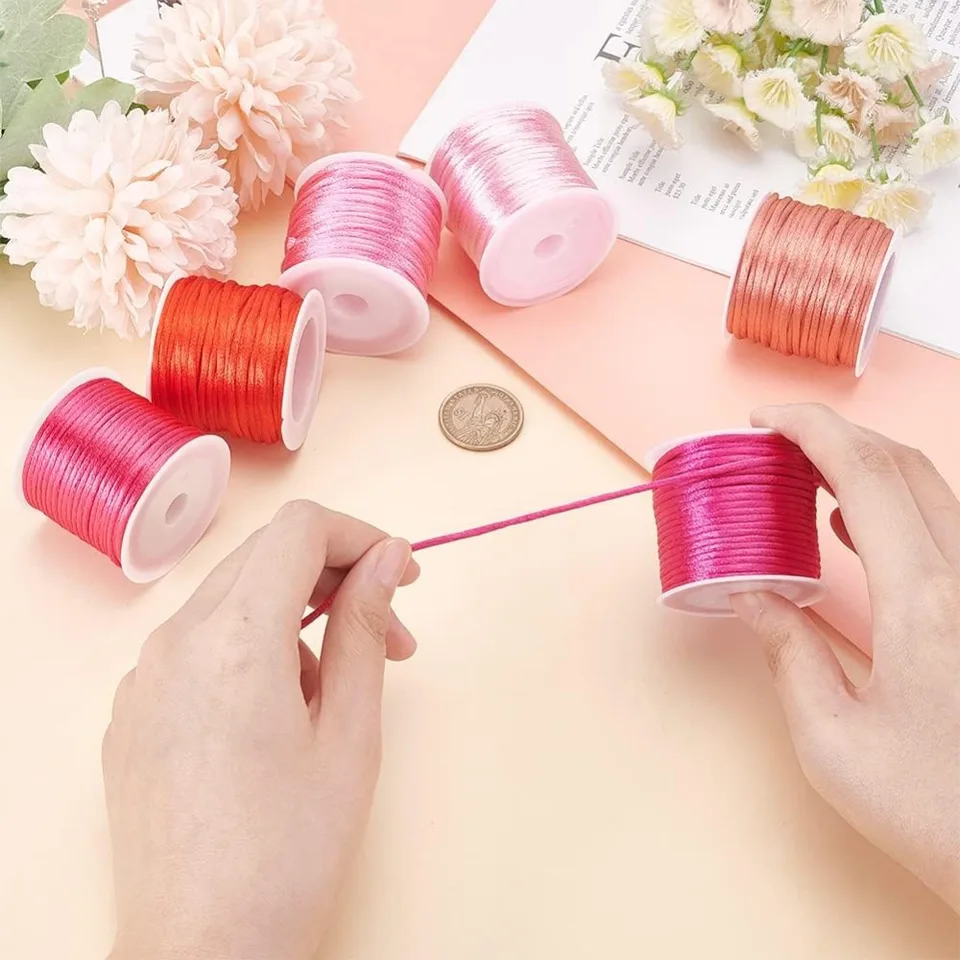100% Polyester macht die Schnur super fest und langlebig. Perfekt für Kumihimo-Arbeiten, Flechtprojekte oder zum Verzieren von Kleidung. Sie lässt sich einfach annähen oder ankleben - total vielseitig!