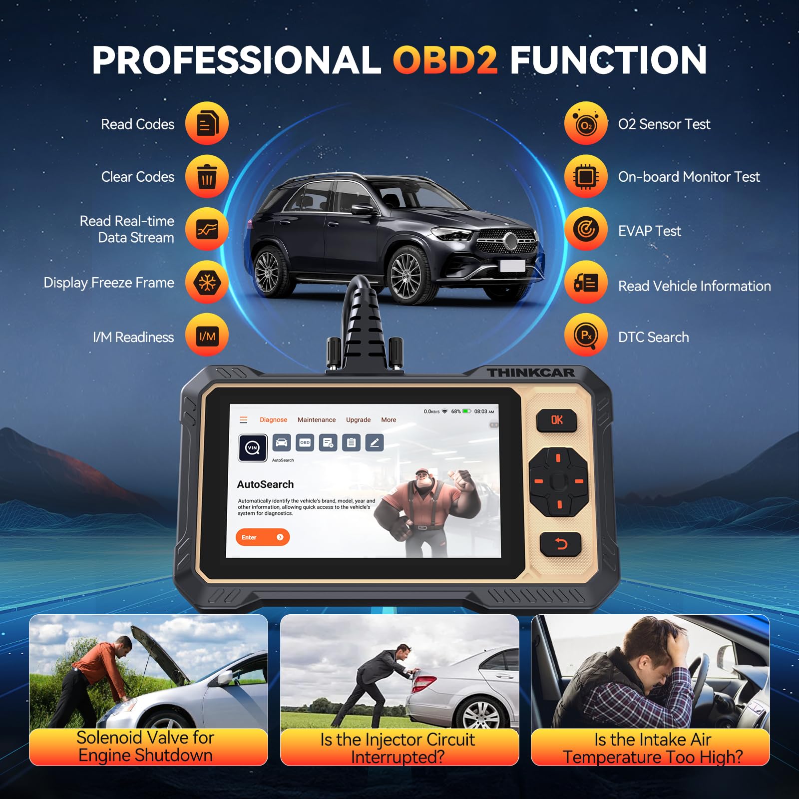 Mann, für alle Auto-Fans und Heimwerker ist dieser THINKSCAN 662 OBD2 Scanner ein absolutes Muss! Mit bidirektionalem Active Test kannst du nicht nur Fehler auslesen, sondern aktiv Komponenten testen - Lüfter einschalten, Fenster öffnen, Einspritzdüsen prüfen, und vieles mehr.