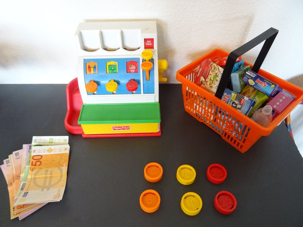 Wow, was für ein cooles Spielzeug! Die BUYGER Kinderkasse bringt richtig Leben in die Spielzeugabteilung. Mit echtem Bondrucker - einfach Deckel auf, Kassenzettel unter das Scrollrad und Pfeiltaste drücken. Schon 'druckt' sie wie eine richtige Supermarktkasse! Der Scanner macht Licht und 'Didi'-Geräusche, der Taschenrechner kann sogar rechnen. Das Mikrofon verstärkt die Stimme, wenn die kleinen Verkäufer durch den Laden rufen. Mit dabei: Spielgeld, Kreditkarten, Quittungen und täuschend echte Spiellebensmittel wie Hähnchen, Mais und Erdbeerkuchen. Die Kassenschublade hat sogar einen Schlüssel - einfach drehen und OPEN-Taste drücken. Perfekt für Rollenspiele, die die Fantasie fördern. Ein super Geschenk zum Geburtstag oder einfach so für Kinder ab 3 Jahren. Da macht Einkaufen spielen richtig Spaß!