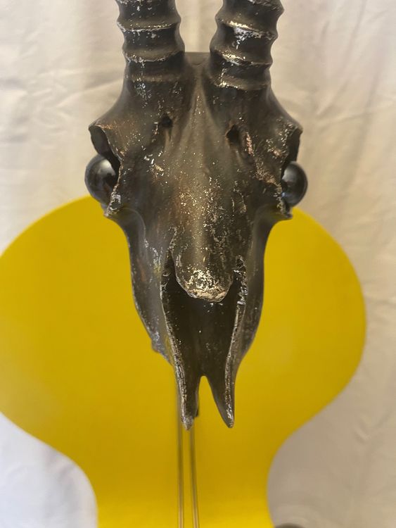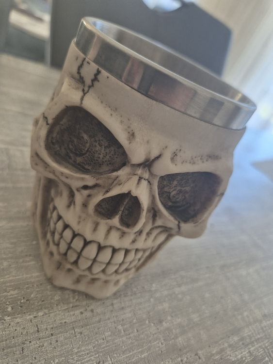 Gruselig schön! Dieser Gusseisen-Schädel ist die perfekte Deko für alle Gothic-Fans und Halloween-Liebhaber. Mit ca. 11cm Höhe, 11cm Breite und 12cm Tiefe ist er genau die richtige Größe für Regal, Sideboard oder als gruselige Tischdekoration. Die antike Patina-Oberfläche in Creme verleiht ihm diesen authentischen, geheimnisvollen Look - als käme er direkt aus einer mittelalterlichen Ruine! Aus robustem Gusseisen gefertigt, ist er ein echter Hingucker der besonderen Art. Ob als Teil deiner Gothic-Einrichtung, für Mottopartys oder einfach als cooles Accessoire - dieser Schädel macht immer was her. Stell ihn zwischen Kerzen, kombiniere ihn mit anderen mystischen Elementen oder verwende ihn als Buchstütze - deiner Fantasie sind keine Grenzen gesetzt. Ein ganz besonderes Deko-Stück für alle, die es etwas ausgefallener mögen!