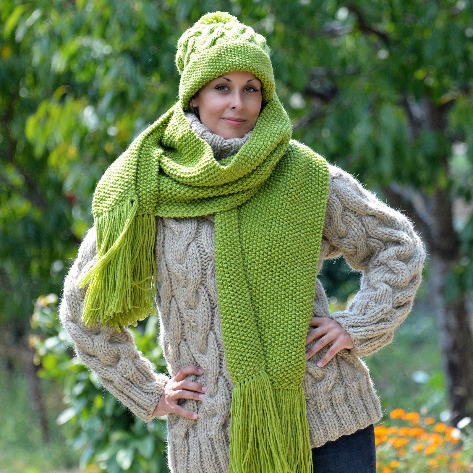 Handgewebter Yakwolle Schal OVERSIZED - Vintage Blätter Design 205cm Luxus Schal