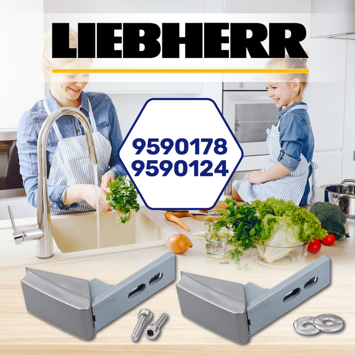 Kaputte Kühlschrank-Scharniere? Dieses Set bringt eure Liebherr-Tür wieder in Schwung!\n\nKompatible Originalnummern:\n• 9590178\n• 9590124 \n• 9590190\n\nIm Lieferumfang:\n• 2x Scharniere\n• 2x Schrauben\n• 2x Unterlegscheiben\n• 2x Abdeckungen\n• 1x Microfasertuch (30x40cm)\n\nMaße:\n• Türbefestigung: 69mm\n• Griffbefestigung: 50mm\n• Breite: 30mm\n• Montageschlitz: 46,7mm\n\nMaterial: Rostfreier Stahl + Kunststoff\n• Korrosionsbeständig\n• Stabil und langlebig\n• Keine Verformung\n\nEinfache Installation - alles Notwendige ist im Set enthalten! Kein Herumfummeln mit unpassenden Teilen.\n\nGarantie: 10 Jahre - Qualität die überzeugt!\n\nTipp: Perfekt für alle, deren Kühlschranktür nicht mehr richtig schließt oder schwergängig ist.