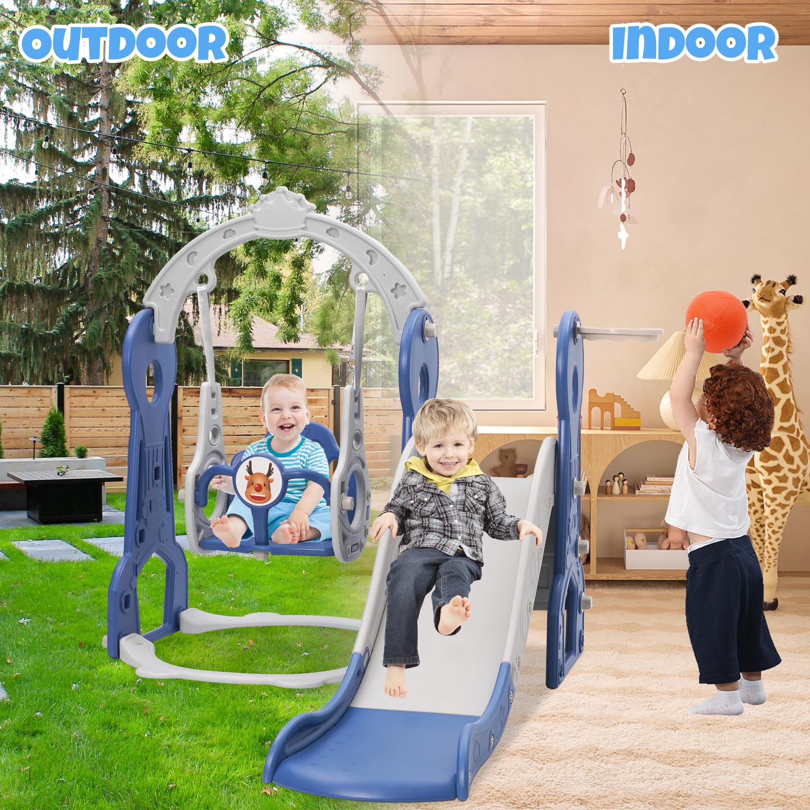 Spielspaß pur für die Kleinen! Dieses YULEYU 4-in-1 Spielset kombiniert Rutsche, Schaukel, Basketball und Kletterspiel in einem. Perfekt für drinnen und draußen - ob im Garten oder im Spielzimmer. Die höhenverstellbare Schaukel mit Rückenlehne und Schutz wächst mit deinem Kind mit. Anti-Rutsch-Pedal mit 13cm Abstand für extra Sicherheit. Extra lange Rutschbahn mit weichem Pufferende - kein hartes Aufkommen. Aus hochwertigem HDPE + PP Material - giftfrei, geruchslos und stabil. Maximale Tragfähigkeit für Jahre voller Spielspaß. Einfache Montage ohne Spezialwerkzeug - klare Anleitung inklusive. Verstärkte Konstruktion mit dickem Schutzgeländer für maximale Sicherheit. Fördert Bewegung, Koordination und macht einfach riesig Spaß. Dein Kind wird dieses vielseitige Spielset lieben! Perfekt für Kinder von 2-6 Jahren. Schaffe dir deinen eigenen Spielplatz im Garten oder Zuhause.