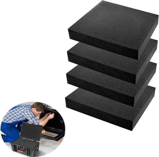 4 Stück im Set - jeweils 40x30x5cm groß. Aus hochwertigem Schaumstoff, leicht aber stabil. Der schwarze Rasterschaum sieht professionell aus.