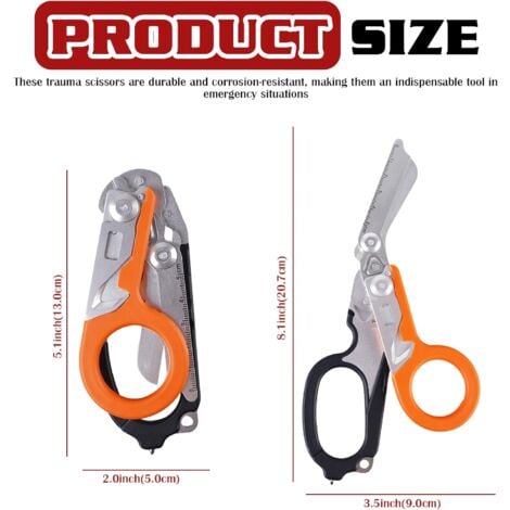 Für alle Notfälle bestens gerüstet! Diese WANDGU Trauma Schere ist ein echtes 6-in-1 Multitool für Rettungseinsätze und Outdoor-Abenteuer. Neben der scharfen Schere für Verbandsmaterial bietet sie einen Gurtschneider für Sicherheitsgurte, einen Ringschneider für eingeklemmte Ringe, einen Sauerstoffflaschenschlüssel, ein integriertes Lineal und einen robusten Glasbrecher für Fenster. Aus rostfreiem Edelstahl gefertigt, ist sie extrem langlebig, korrosionsbeständig und immer einsatzbereit. Mit den Maßen 20,7 x 9 x 2 cm (gefaltet 13 x 5 x 2 cm) und einem Gewicht von nur 154 g passt sie in jeden Rucksack oder Rettungskoffer. Die ergonomischen Griffe liegen gut in der Hand und ermöglichen sicheres Arbeiten auch unter Stress. Perfekt für Rettungsdienste, Feuerwehr, Outdoor-Camping oder einfach fürs Auto. Ein unverzichtbares Tool, das im Ernstfall Leben retten kann. Im Lieferumfang ist 1x Trauma Schere enthalten - dein zuverlässiger Begleiter für alle Notfälle!