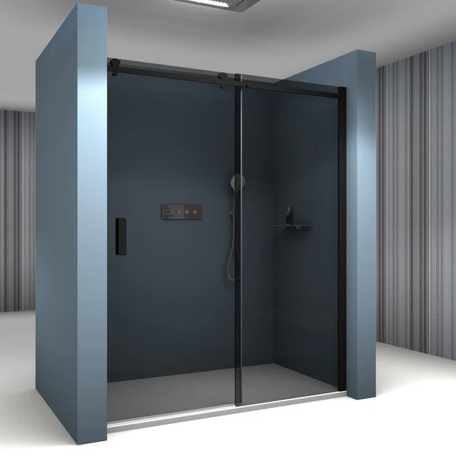 BERNSTEIN Nischendusche 100cm Mit Schiebetür - ESG-Glas Grau Nano Beschichtung Schwarz